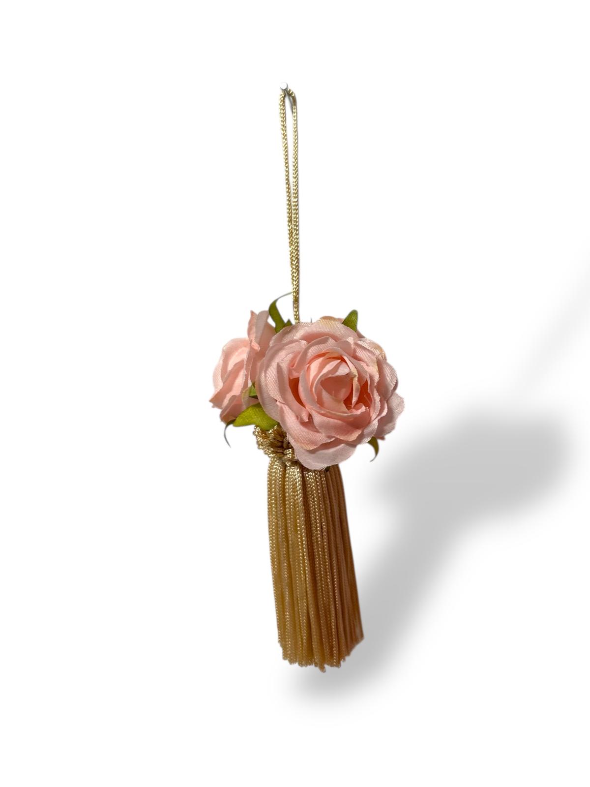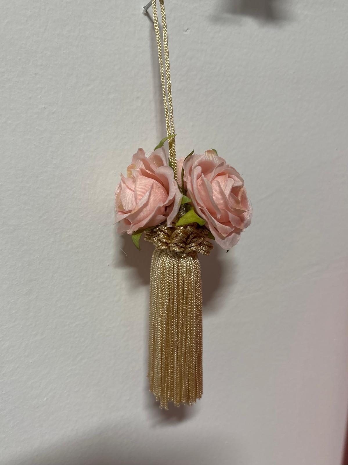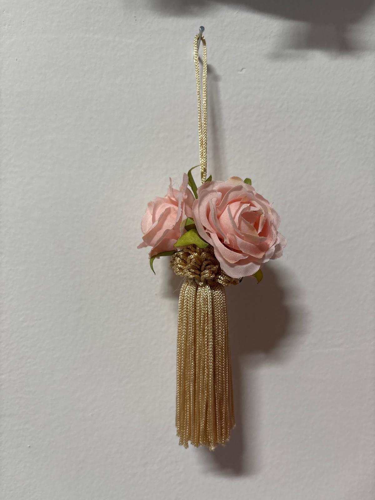 Embrasse per chiavi avorio per impreziosire armadi, decorato con roselline rosa.