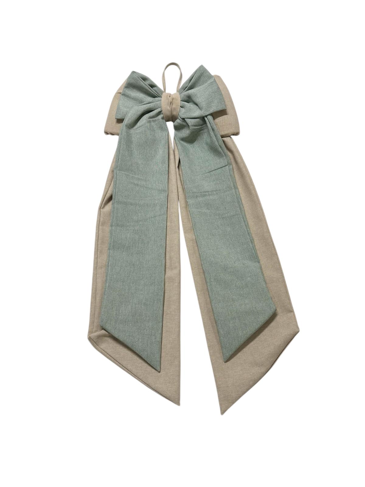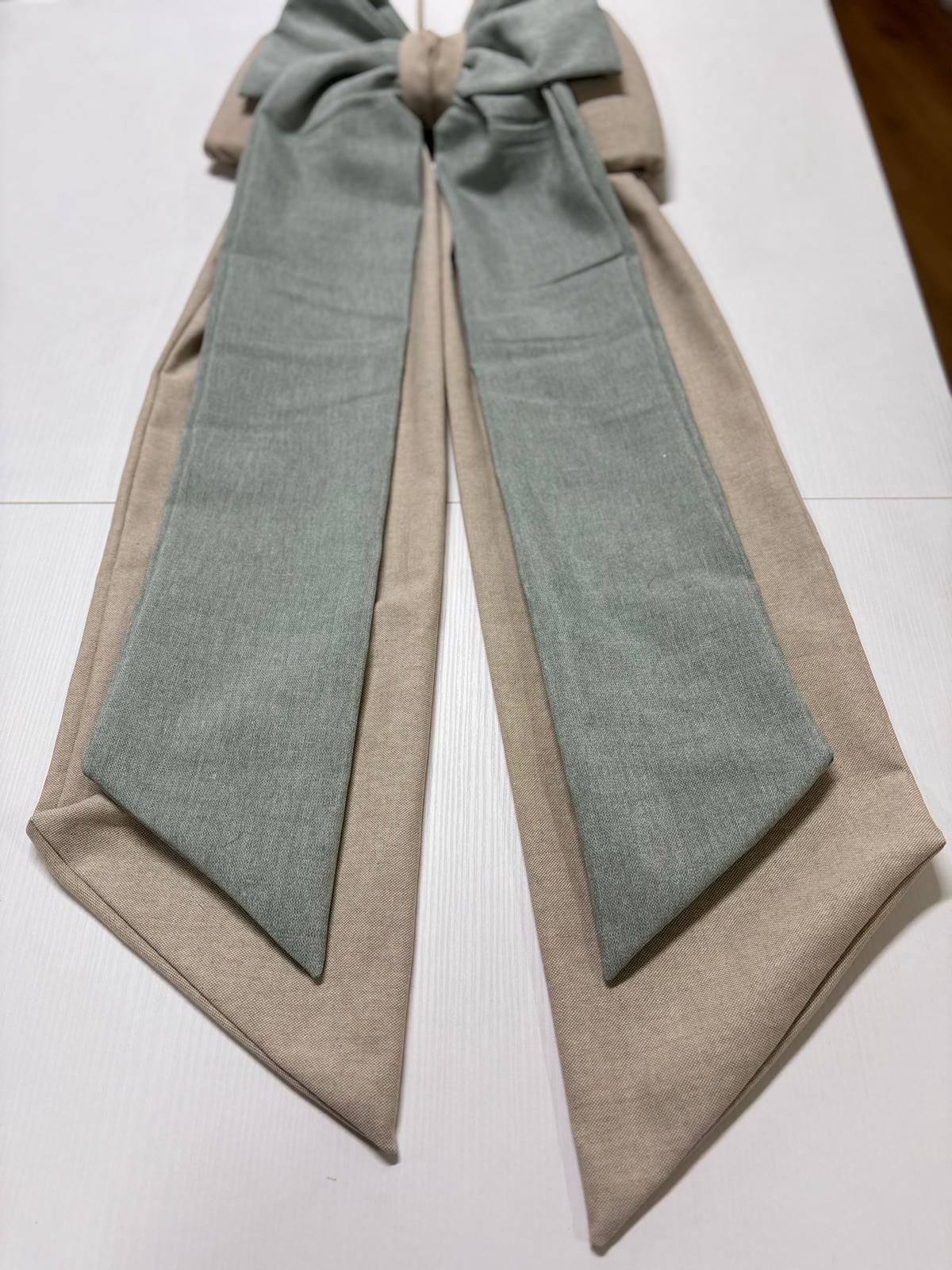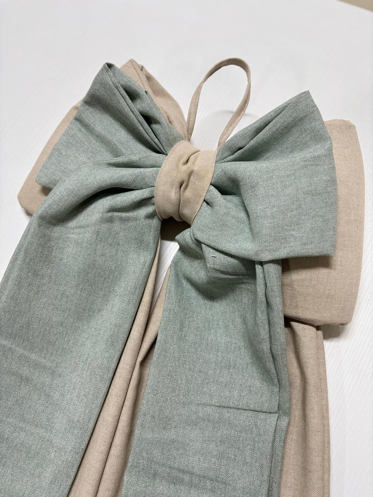 Fiocco tortora e fiocco azzurro in cotone rustico.