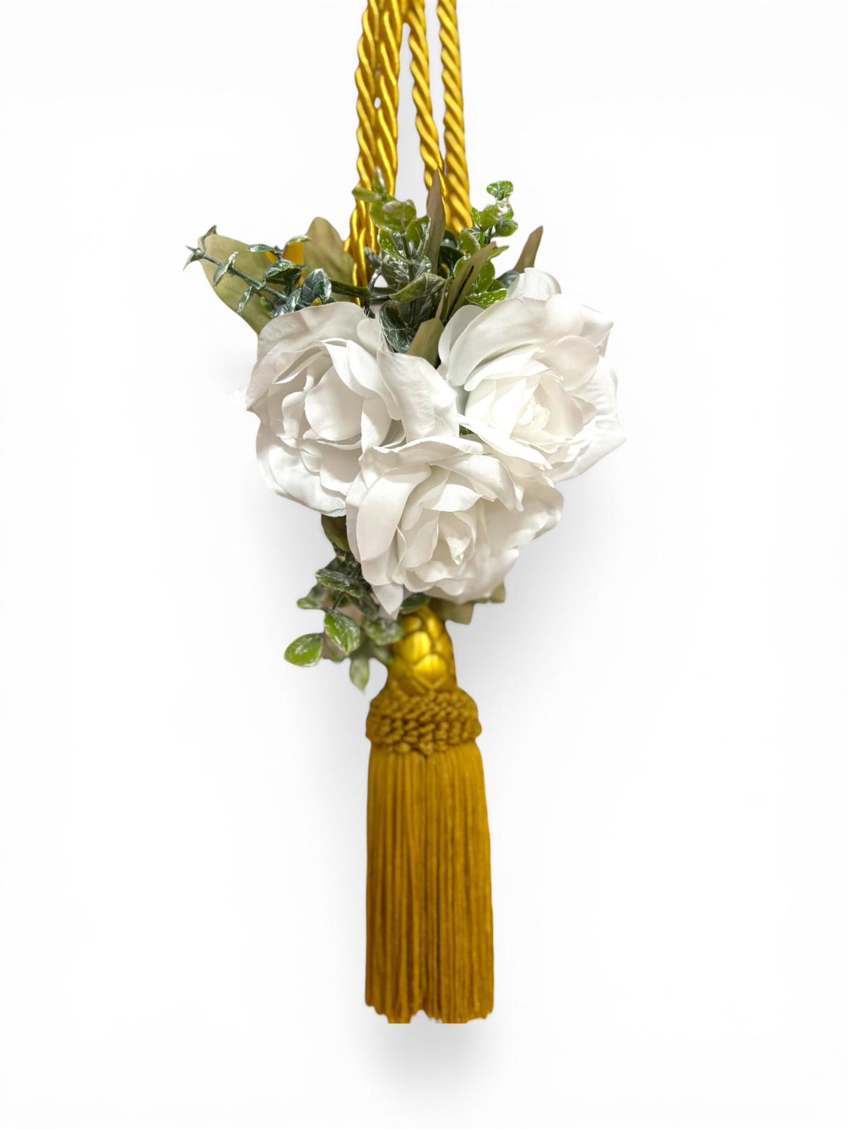 Embrasse per tende con rose bianche. Lavorazione artigianale.