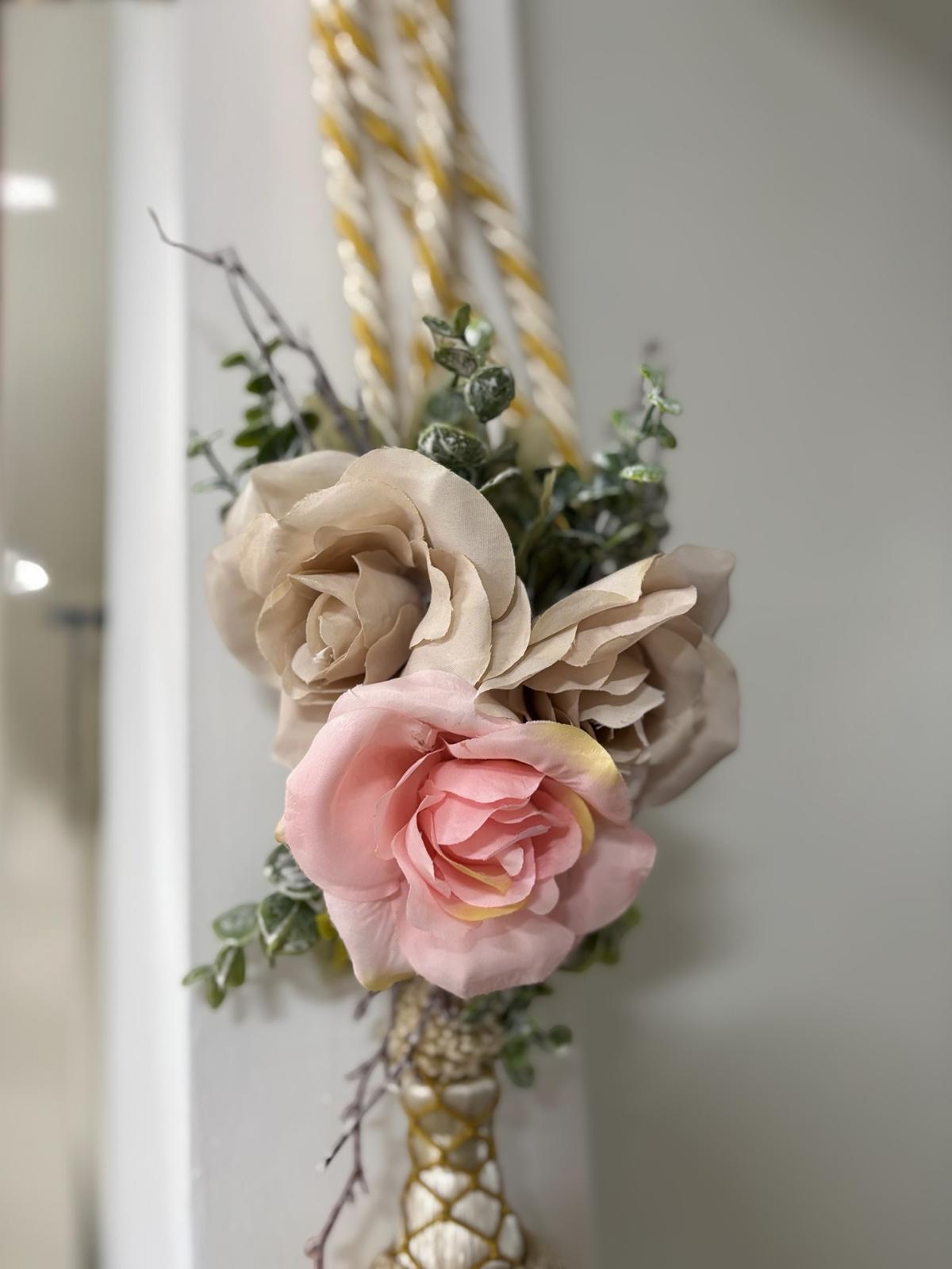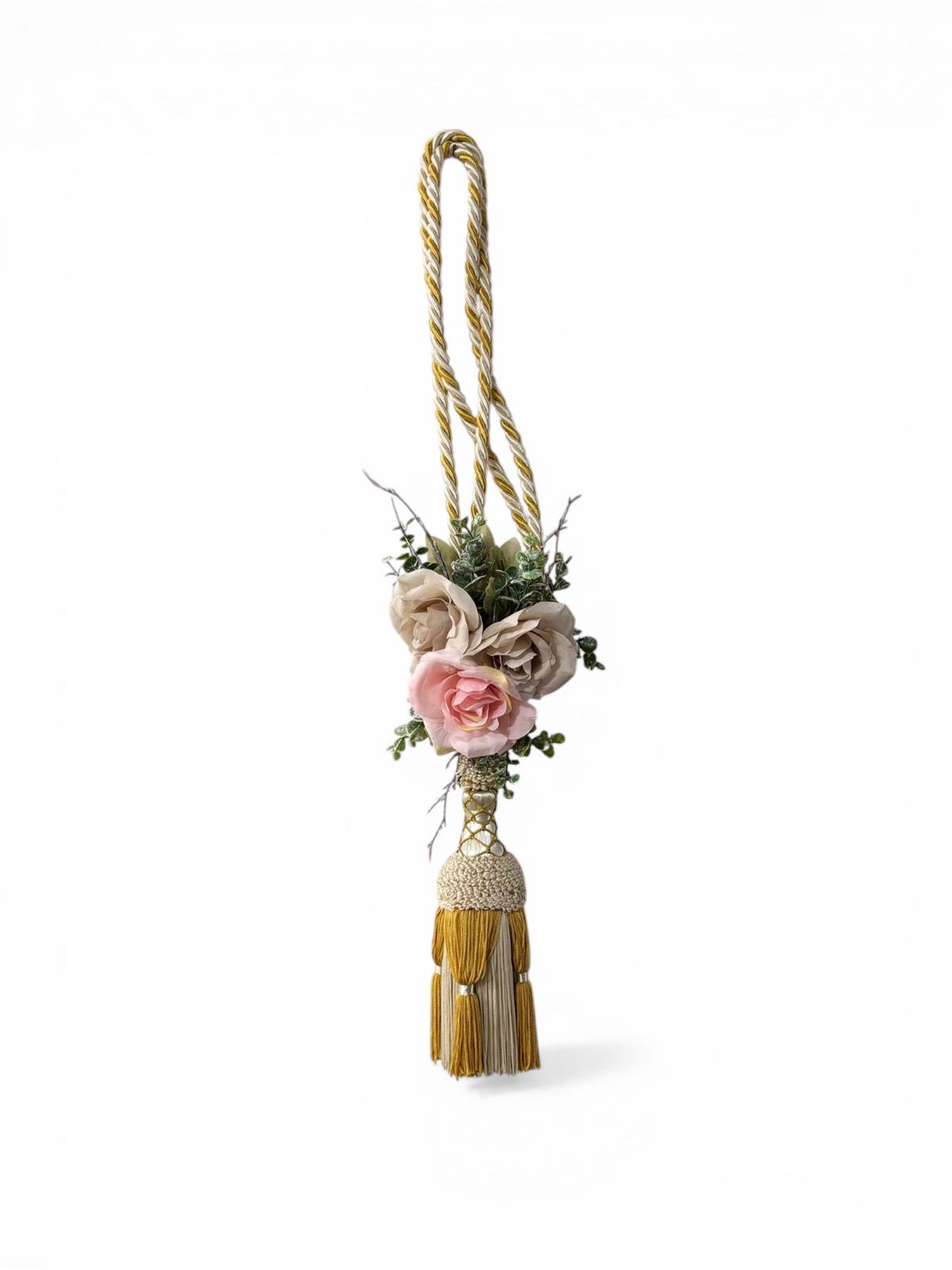 Embrasse per tende oro e bianco con rose. Lavorazione artigianale.