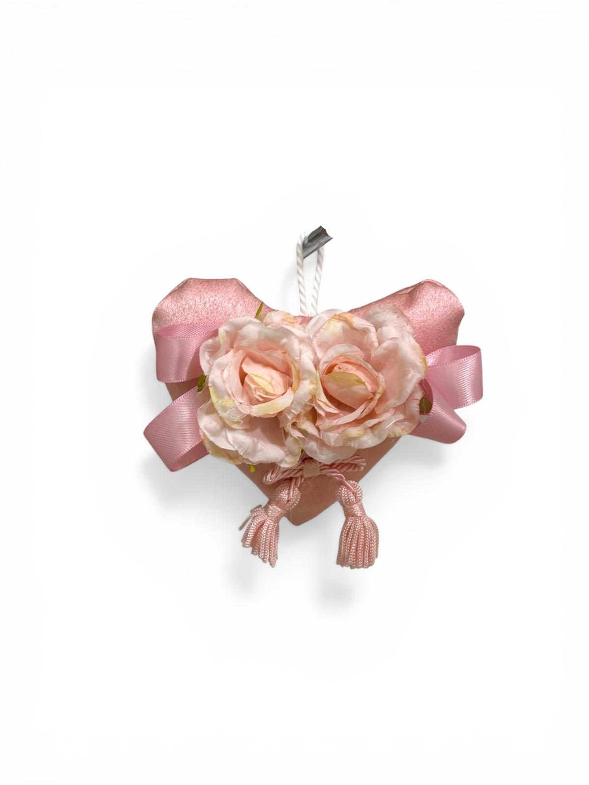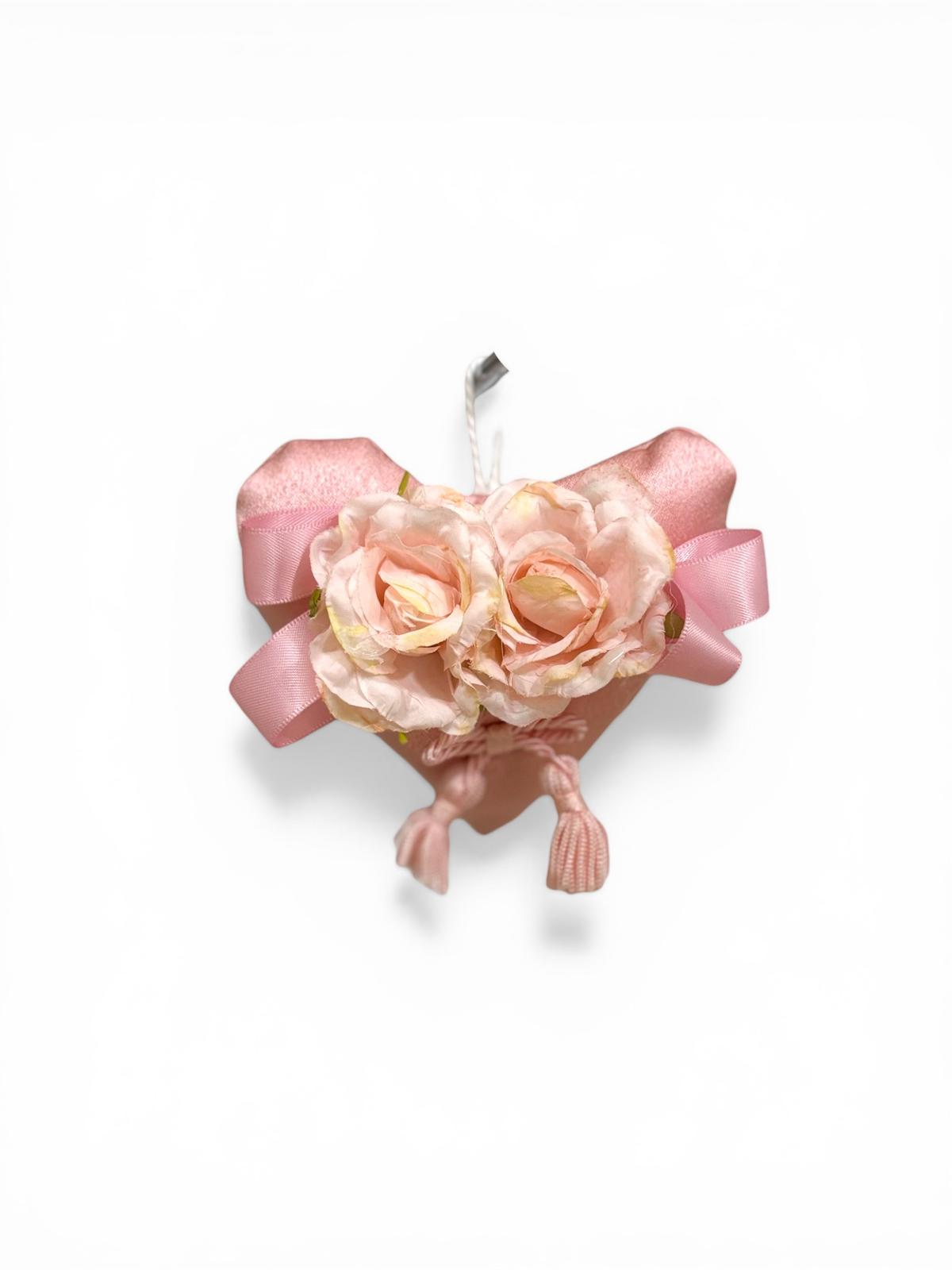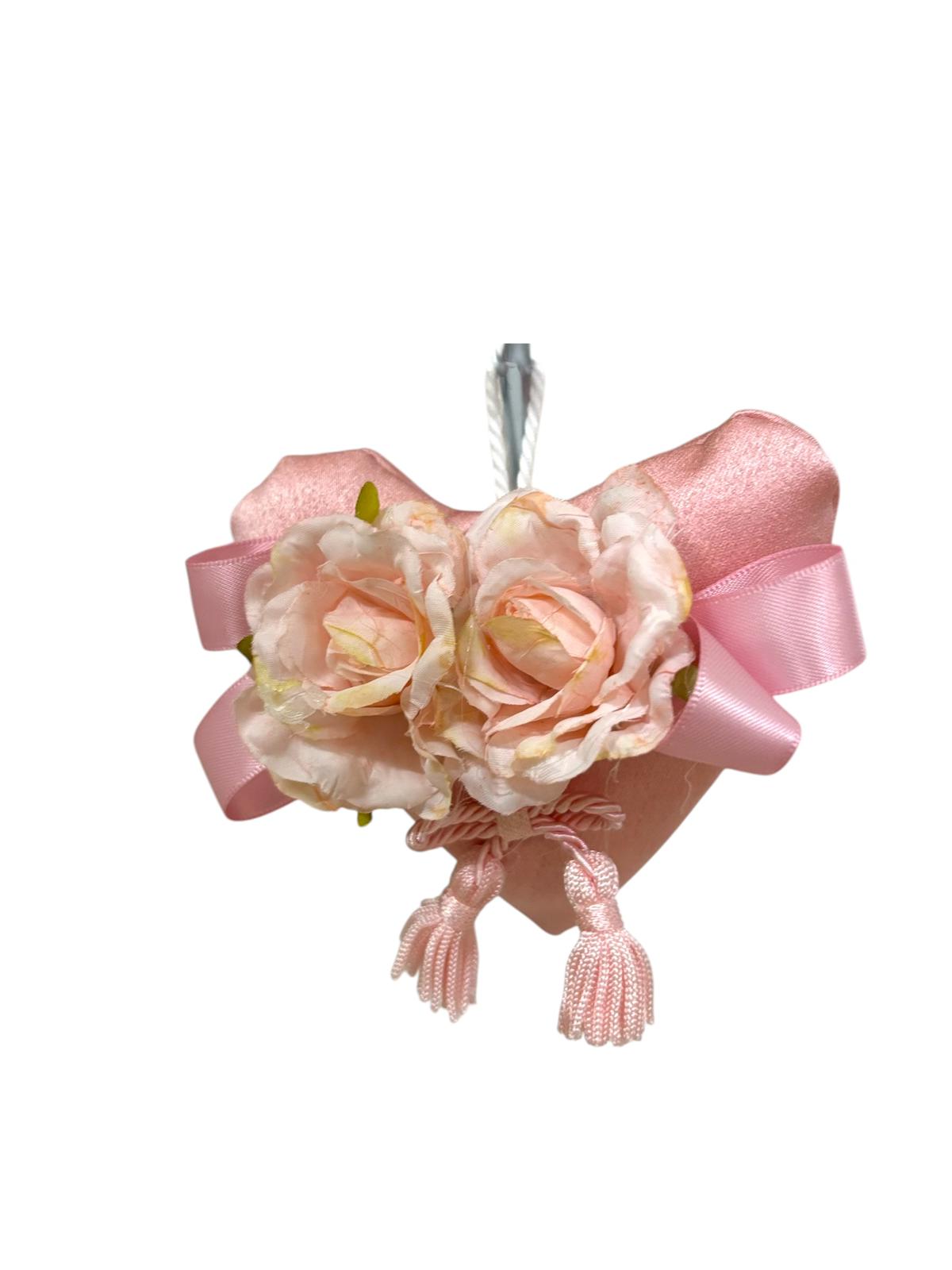 Embrasse per chiavi a forma di cuore rosa decorato con roselline rosa.