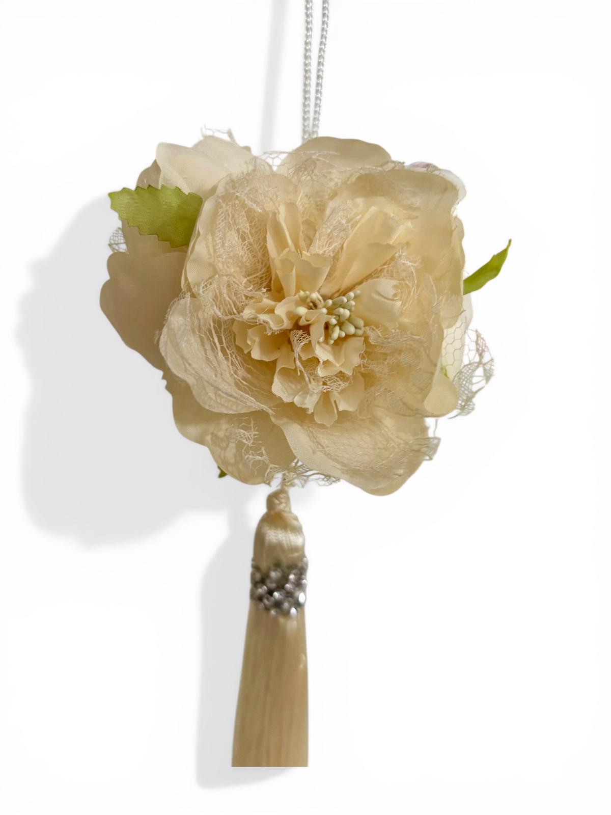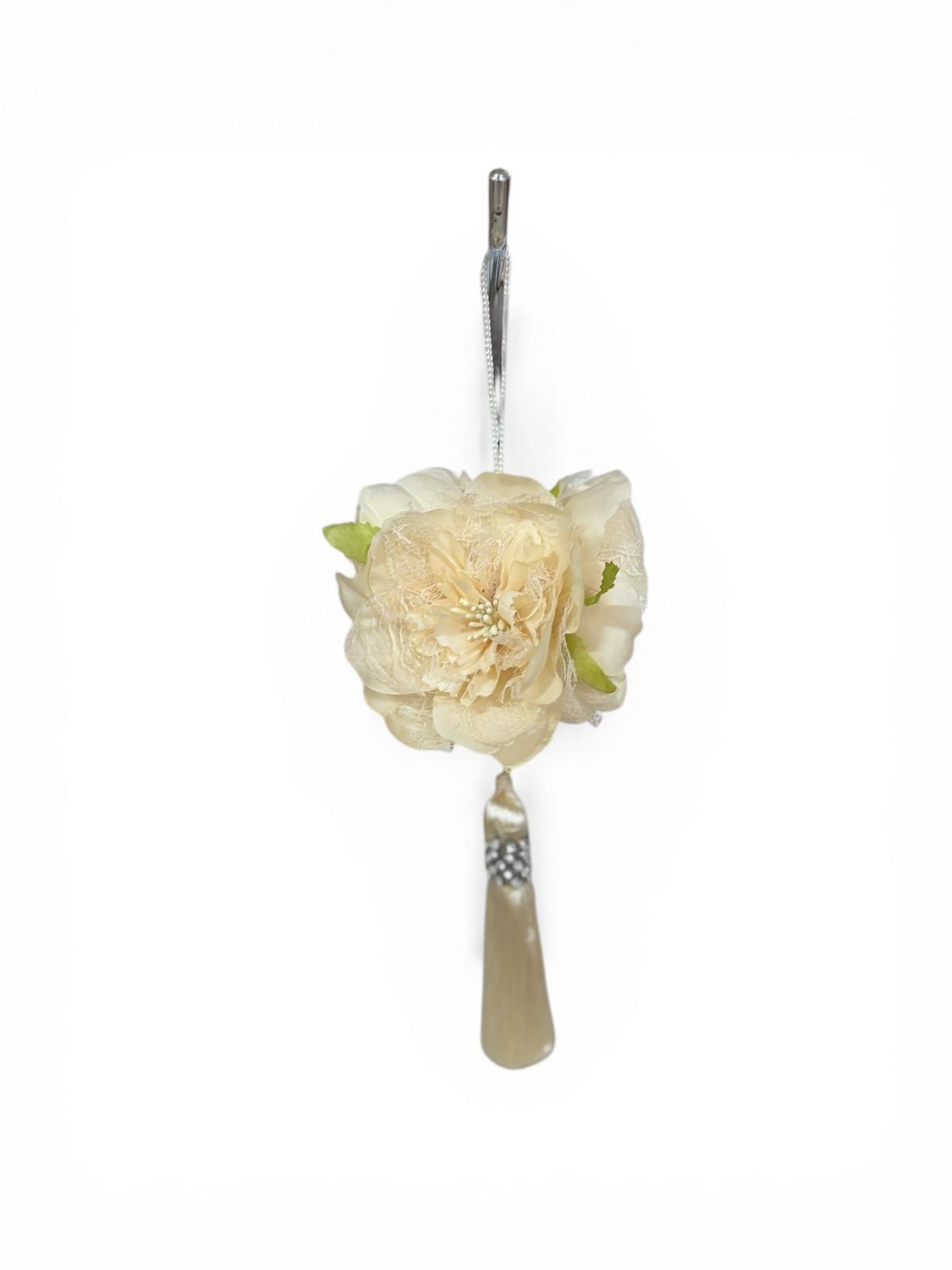 Embrasse per chiavi avorio per impreziosire armadi, decorato con fiori avorio.