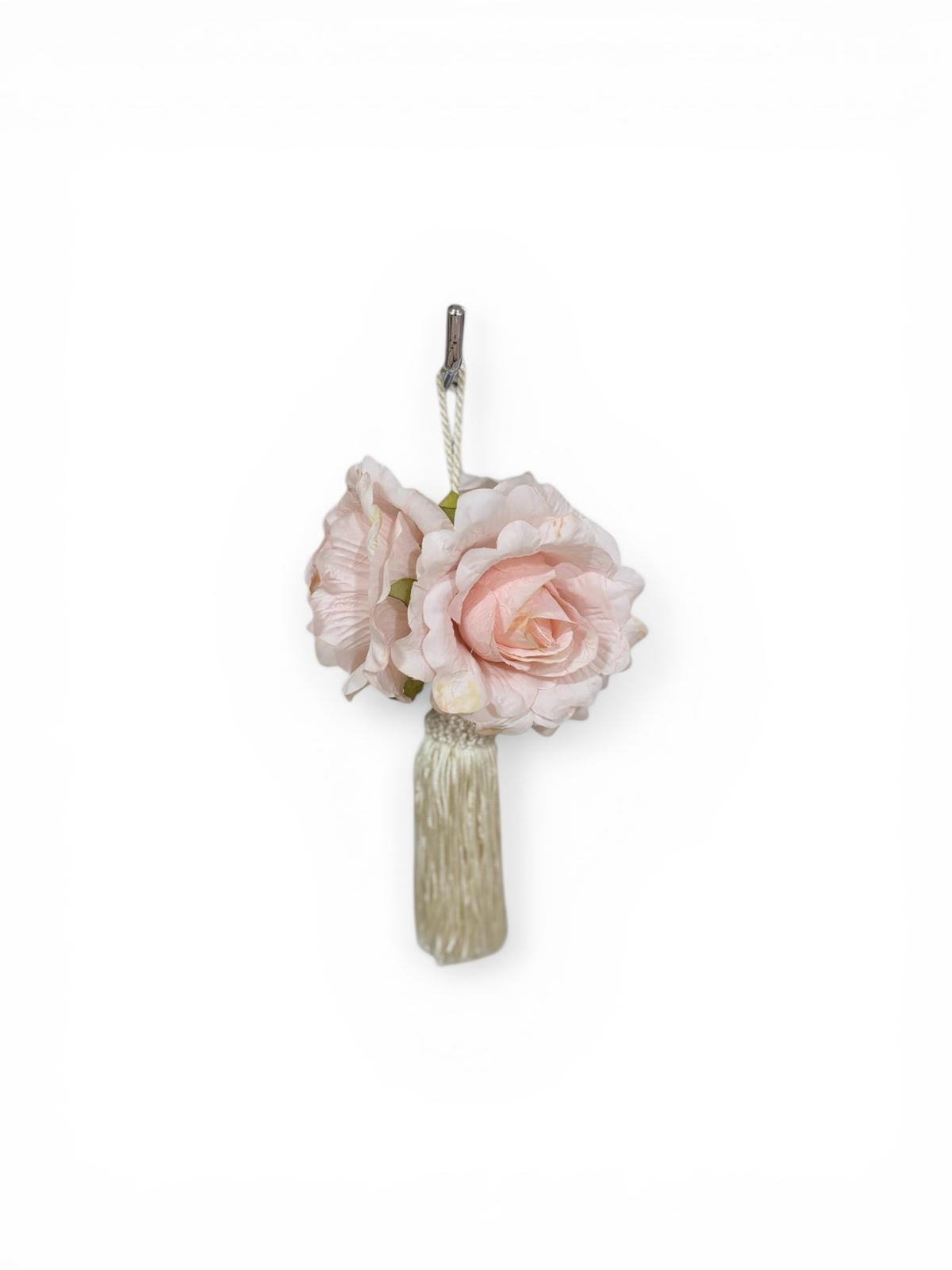 Embrasse per chiavi avorio per impreziosire armadi, decorato con roselline rosa.