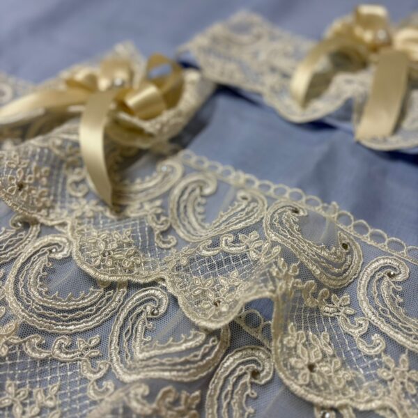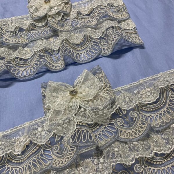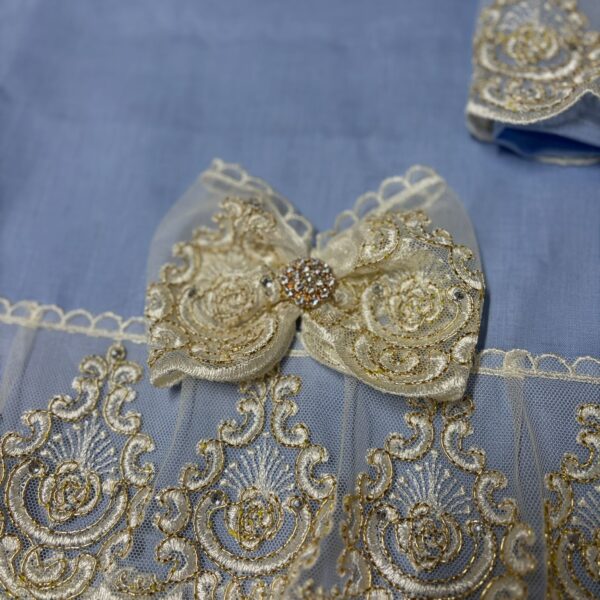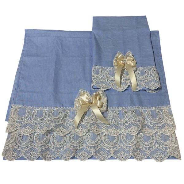 Art 1197 Coppia asciugamani celesti con pizzo oro