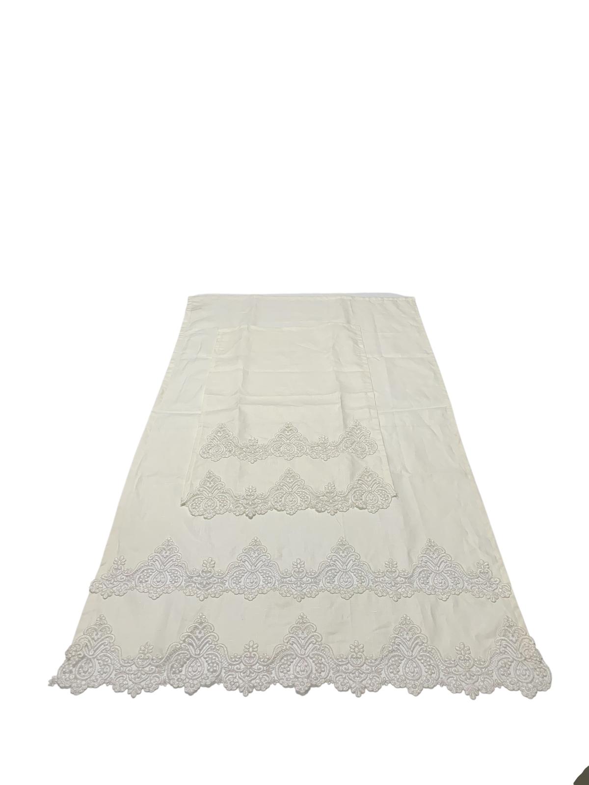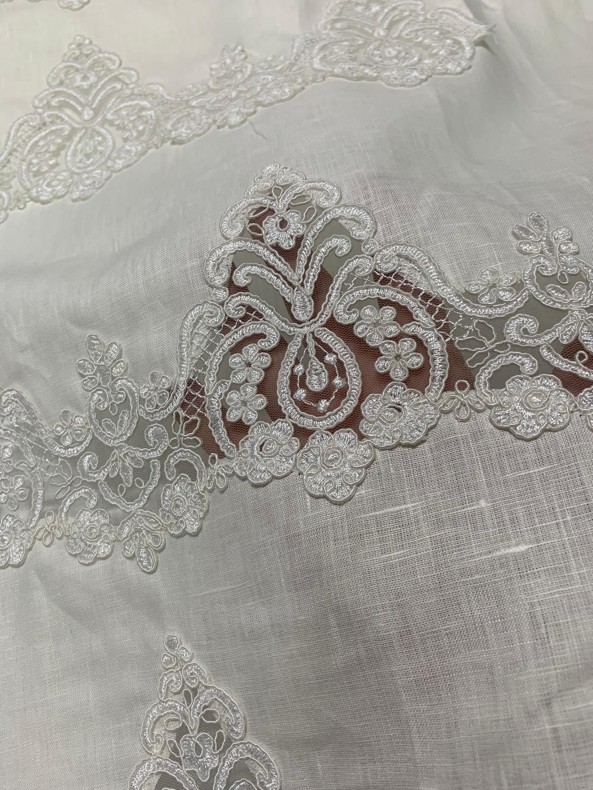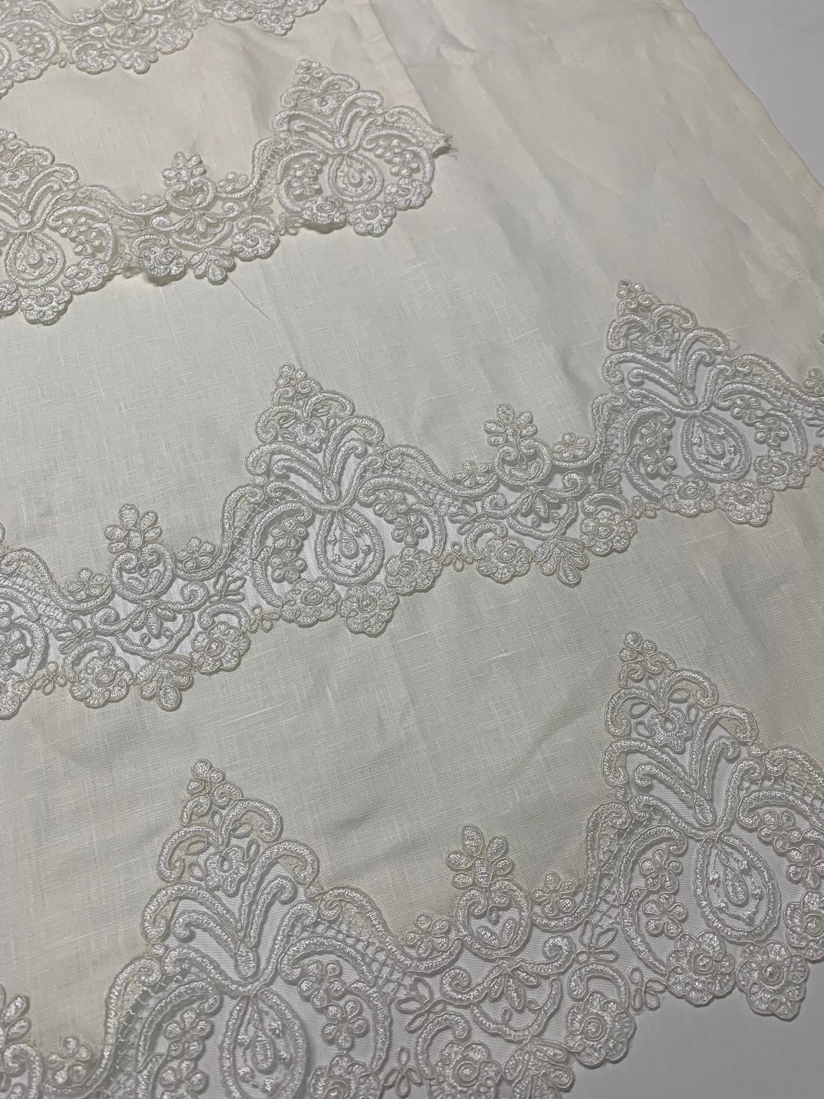 Asciugamani in puro lino con pizzo rebrodè lavorazione a intaglio