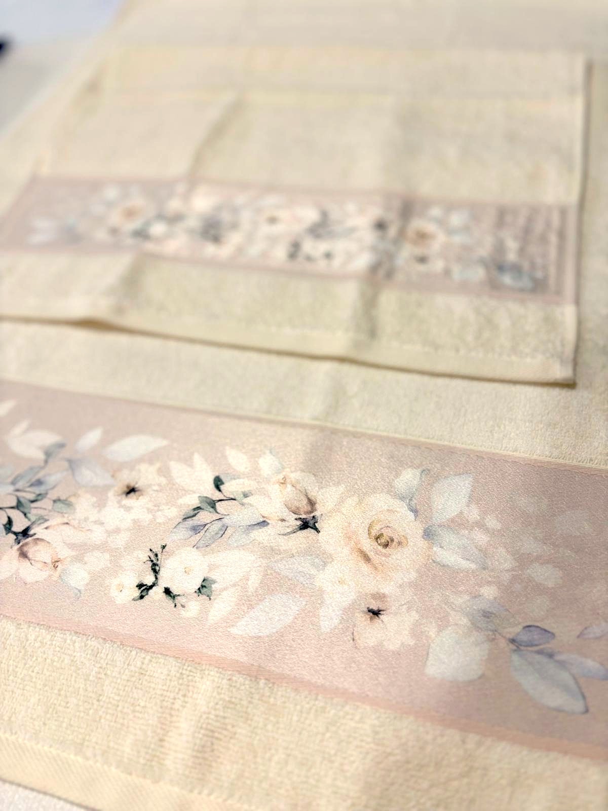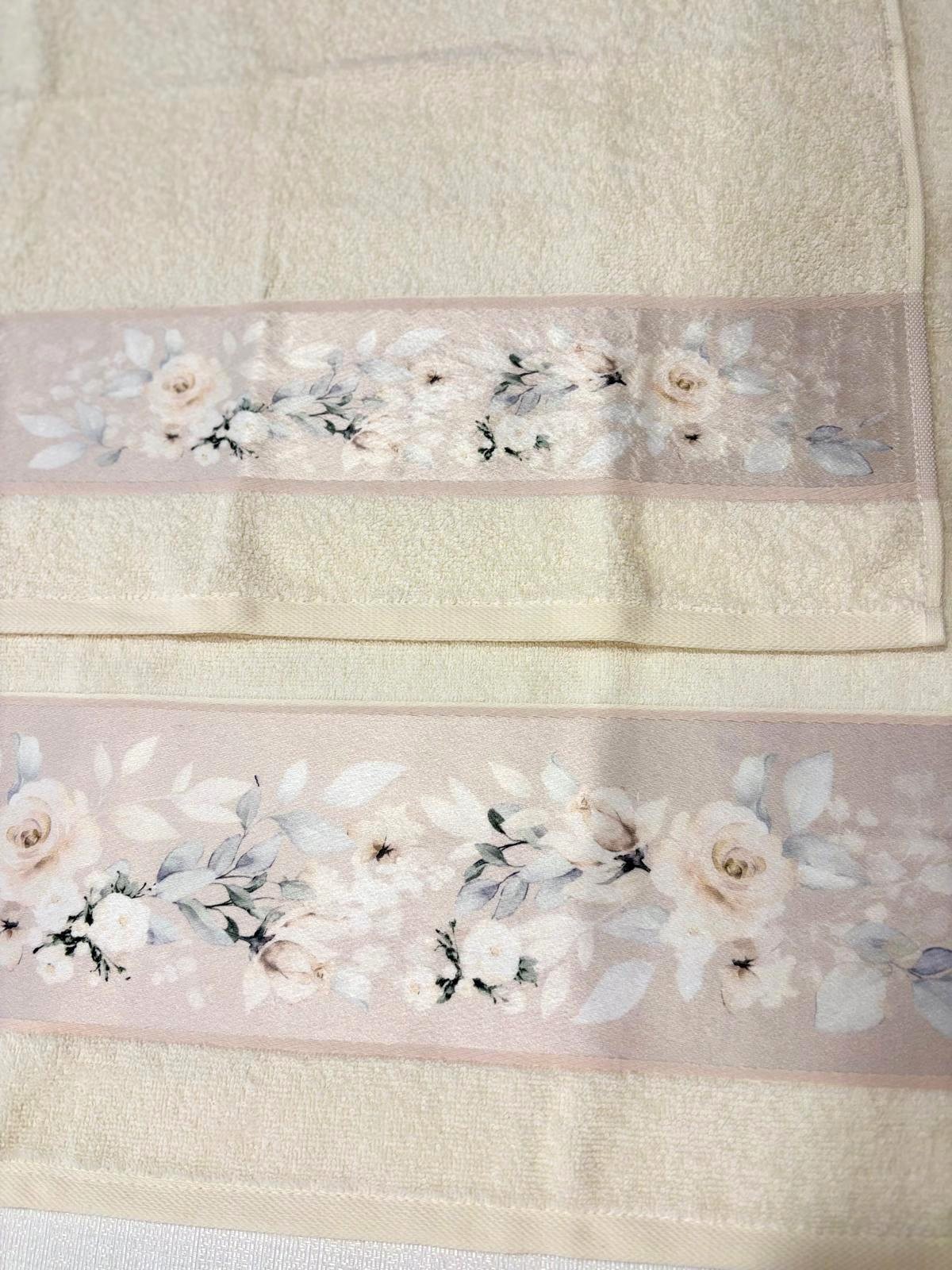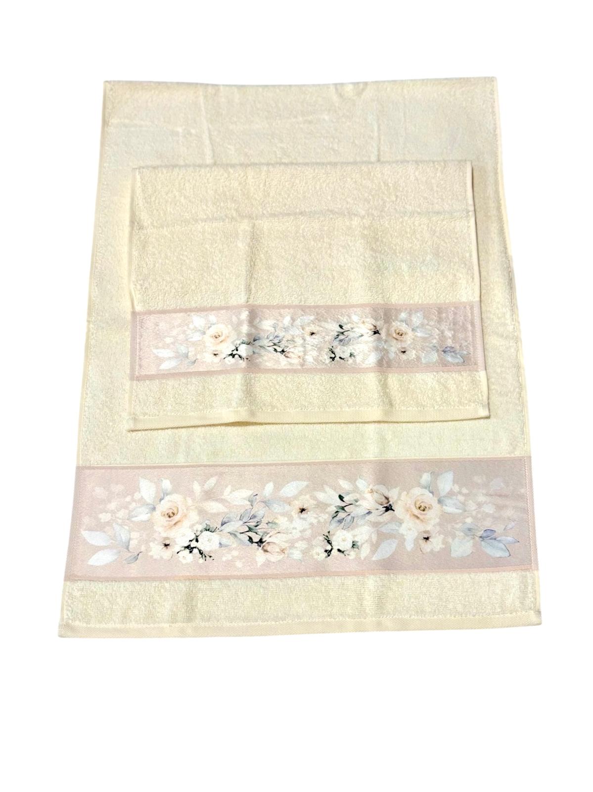 Set asciugamani 1+1 panna con stampa floreale.