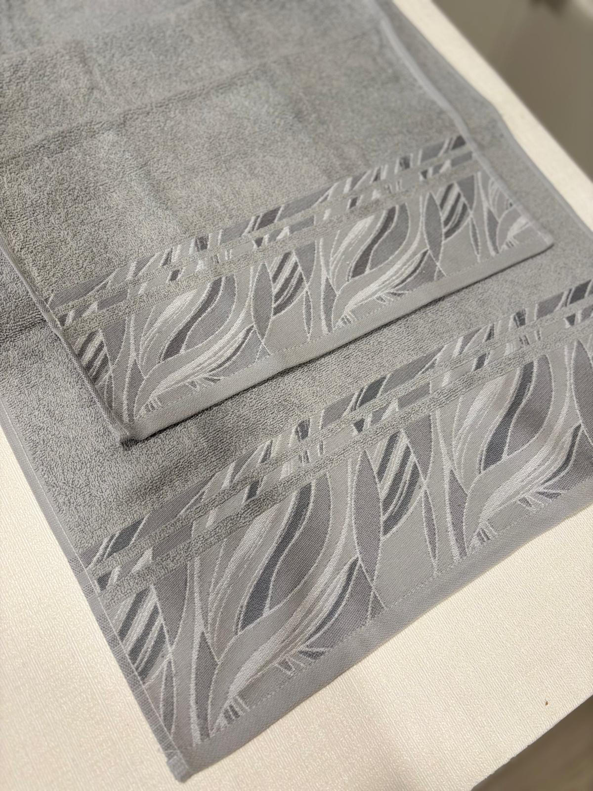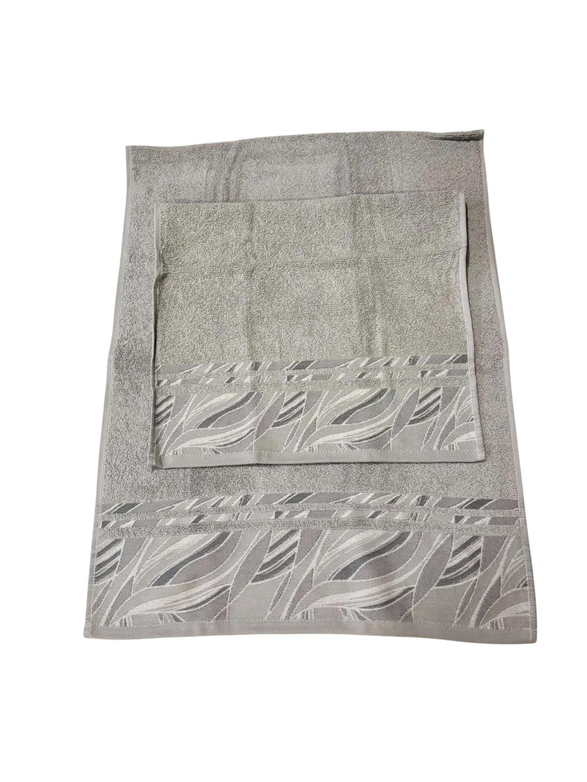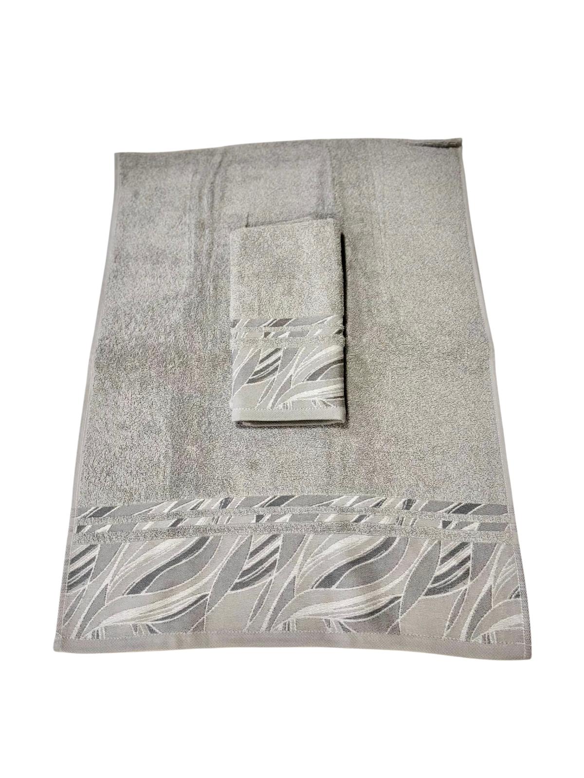 Set asciugamani 1+1 grigio con stampa jacquard.