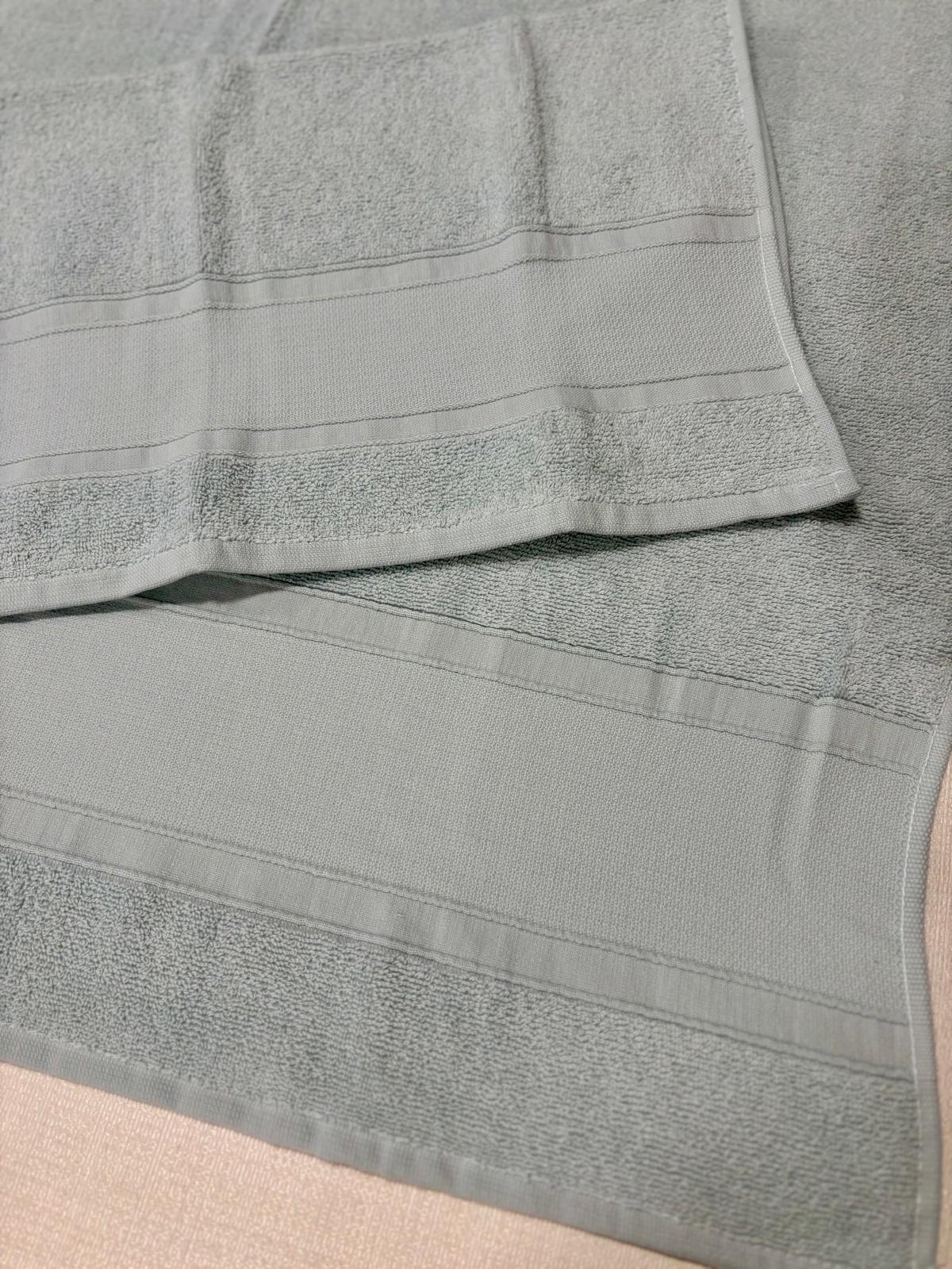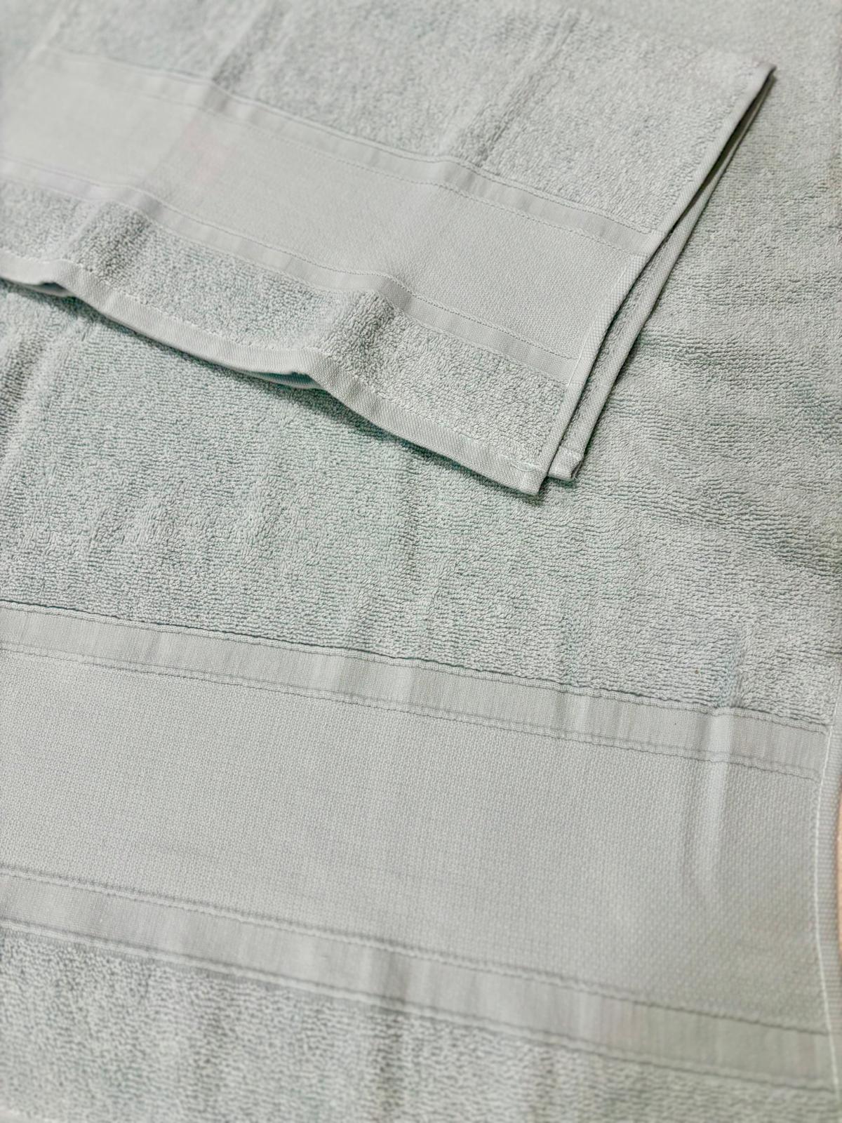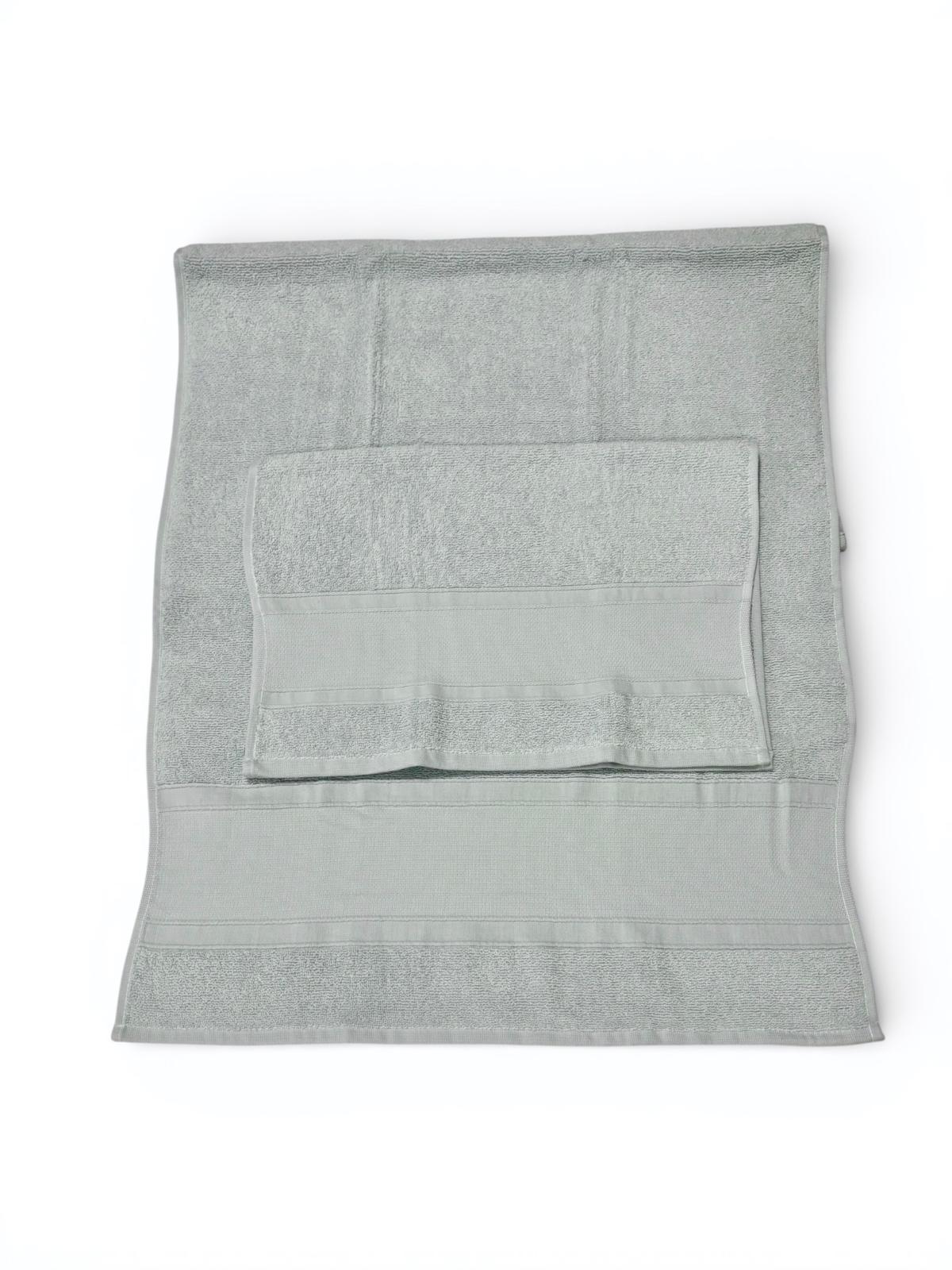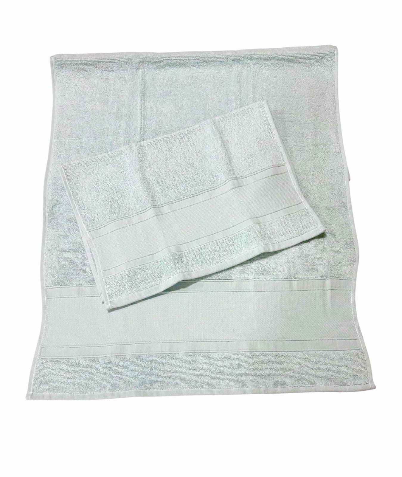 Set asciugamani in spugna 1+1 azzurri con fascia larga.