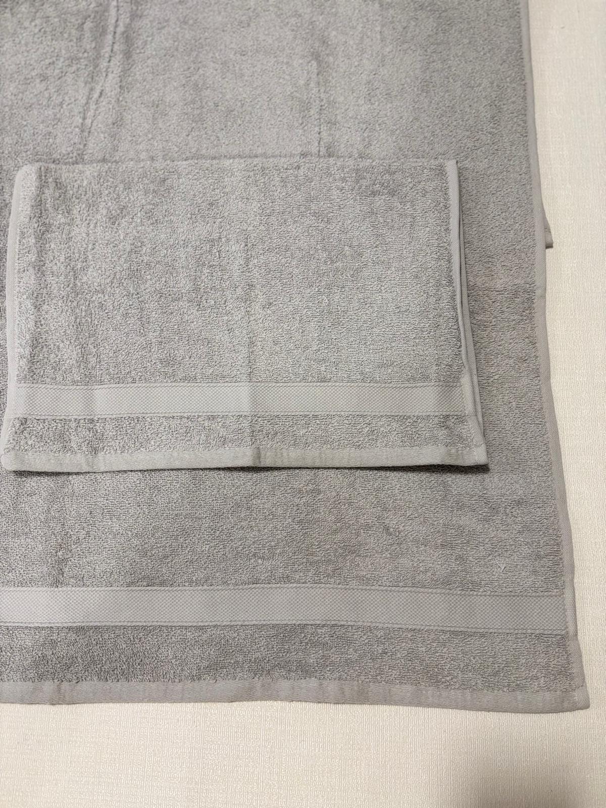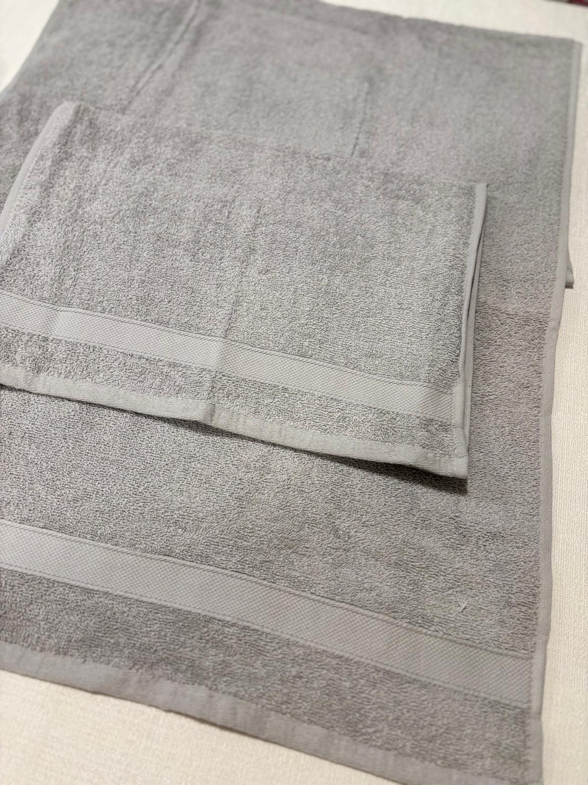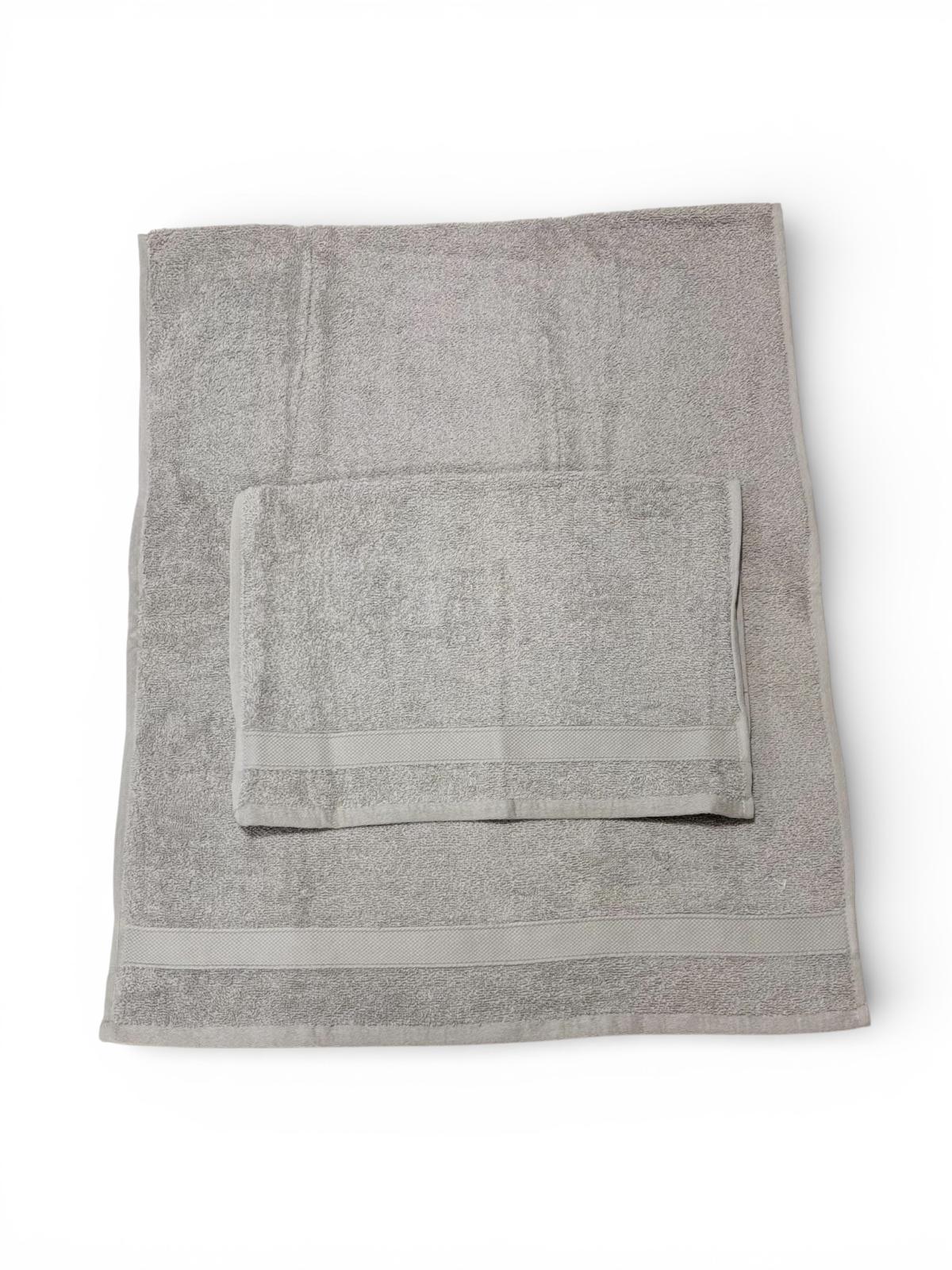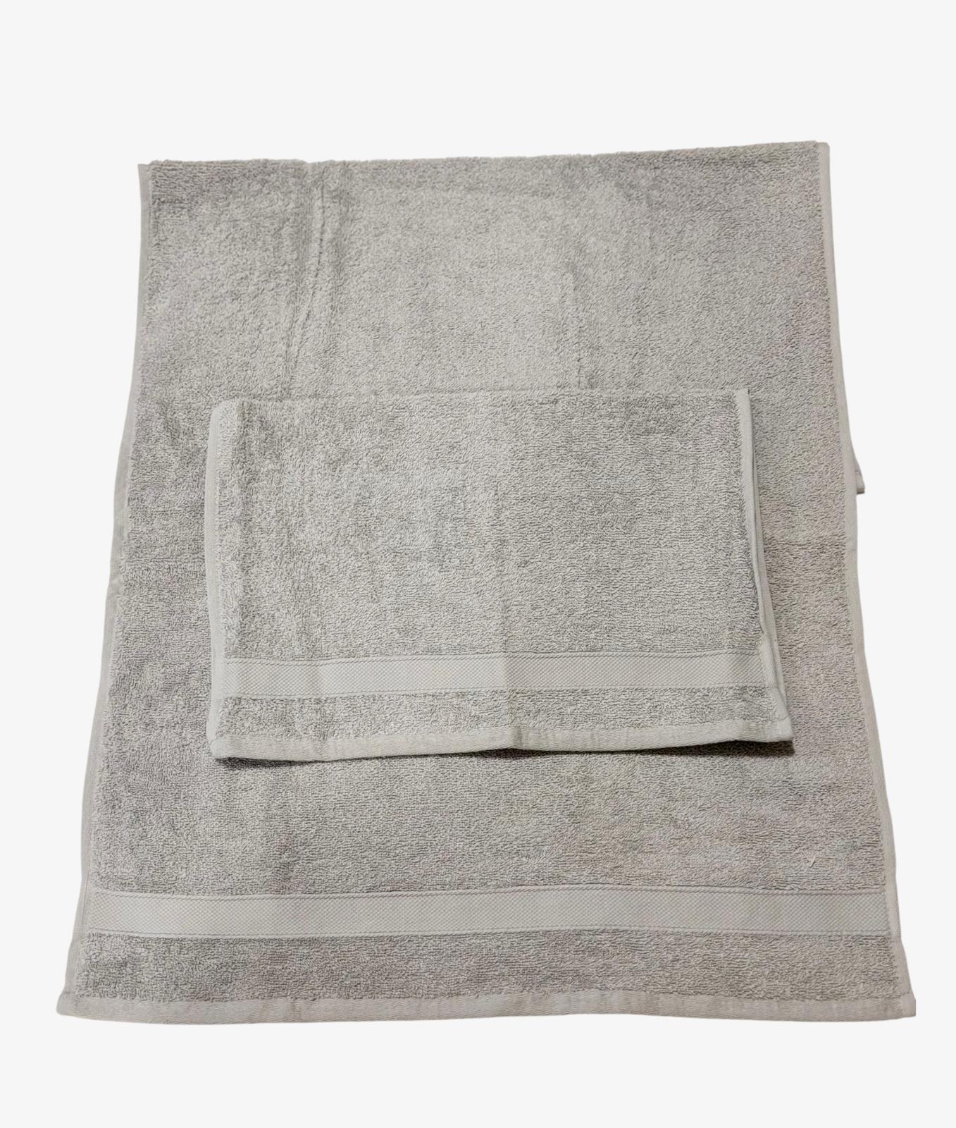 Set asciugamani 1+1 in spugna color perla con fascia stretta.