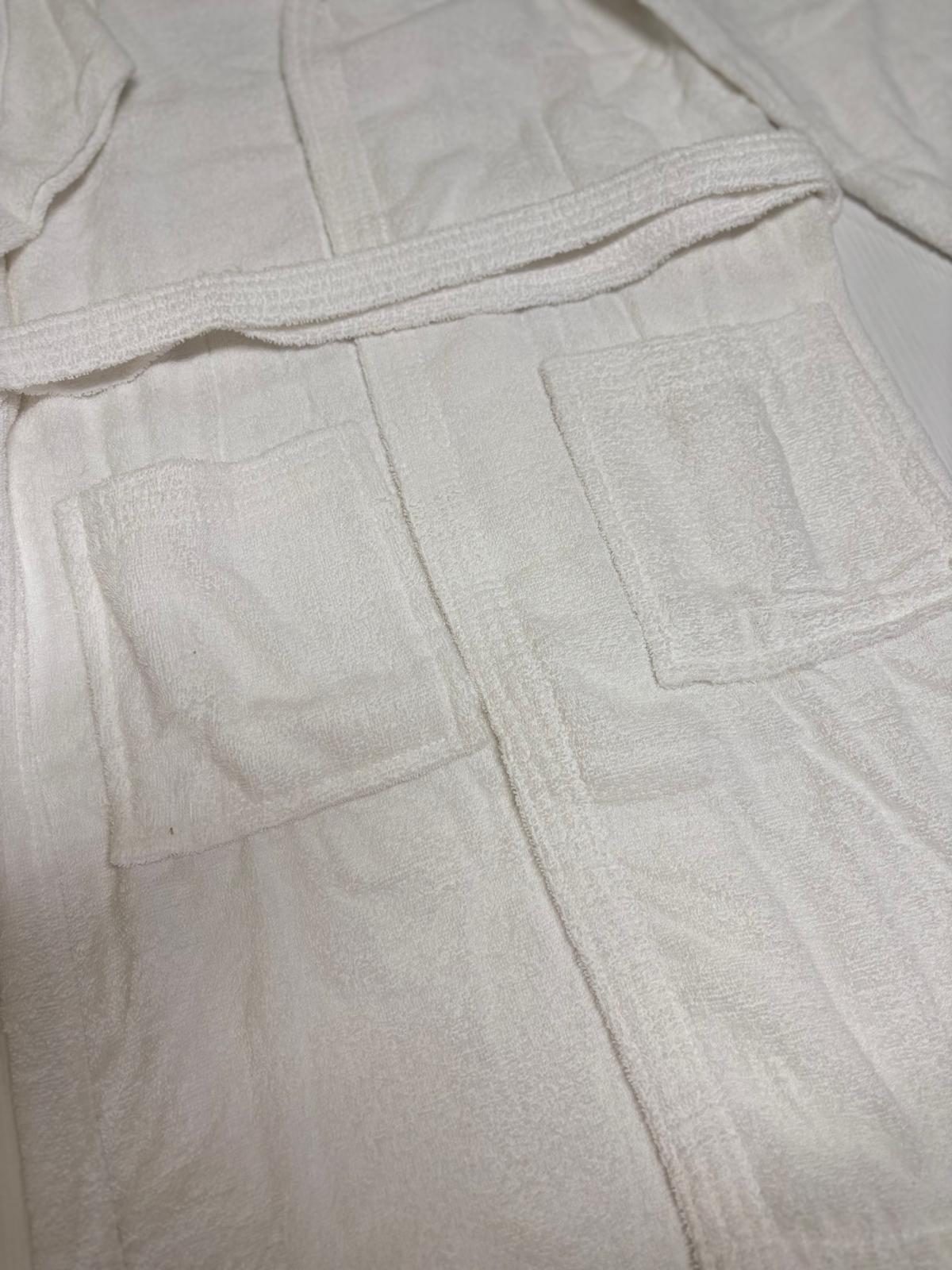 Accappatoio bianco in spugna con cintura e tasche. E’ possibile personalizzarlo con lettere, per info contattarmi in privato.