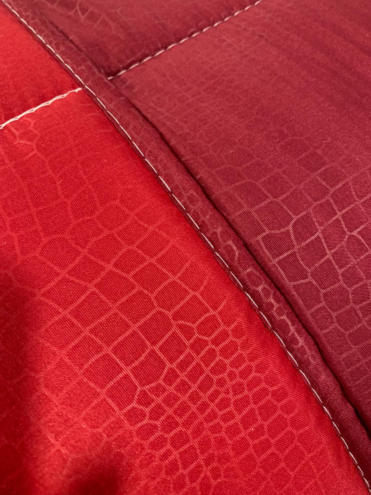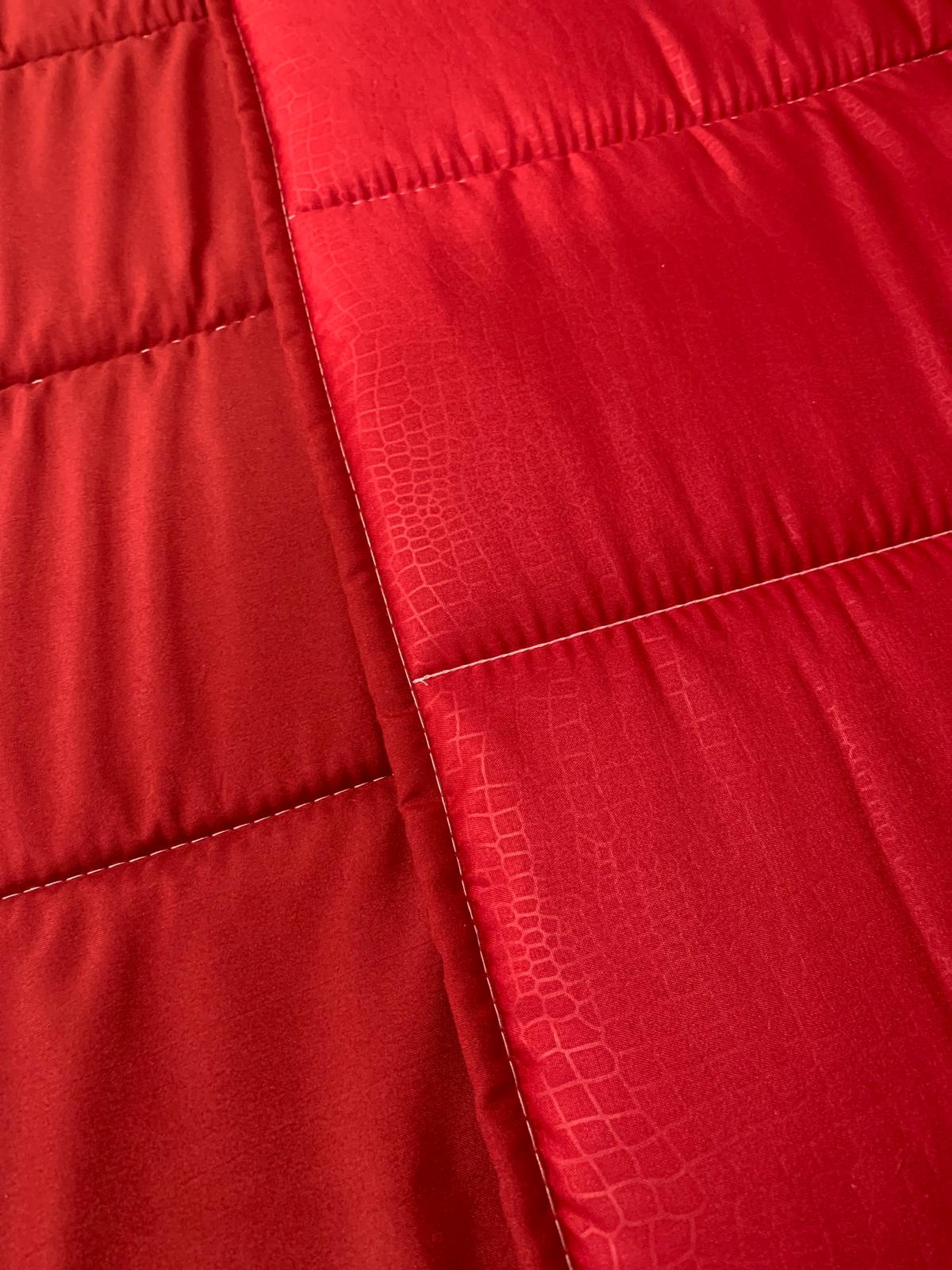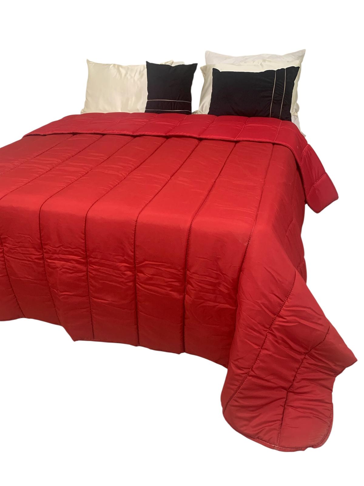 Trapunta matrimoniale invernale double face rossa e bordeaux progettata per essere utilizzata da entrambi i lati offrendo la possibilità di cambiare l’aspetto del letto senza cambiare la trapunta.