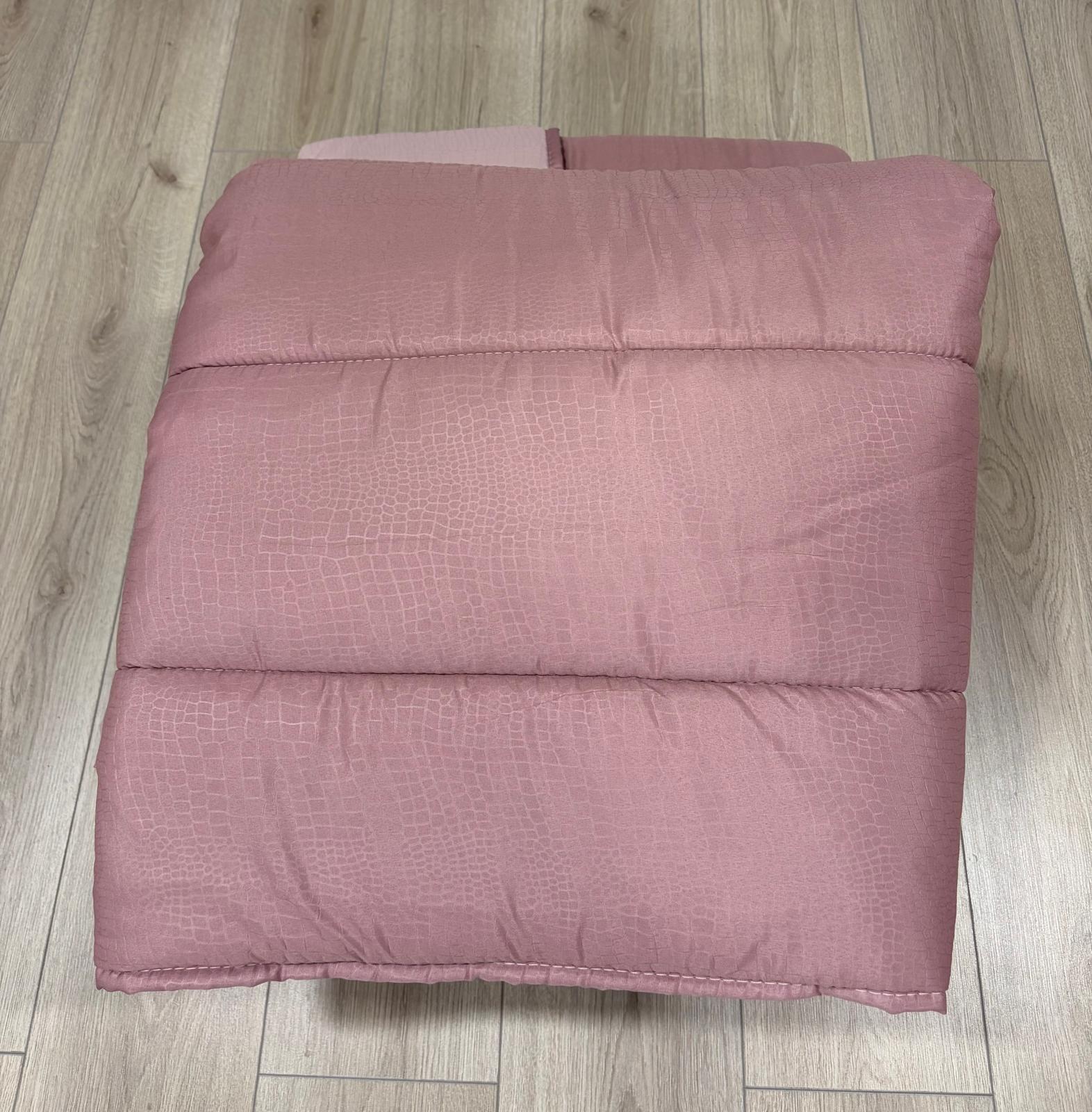 Trapunta matrimoniale invernale double face rosa e rosa antico progettata per essere utilizzata da entrambi i lati offrendo la possibilità di cambiare l’aspetto del letto senza cambiare la trapunta.