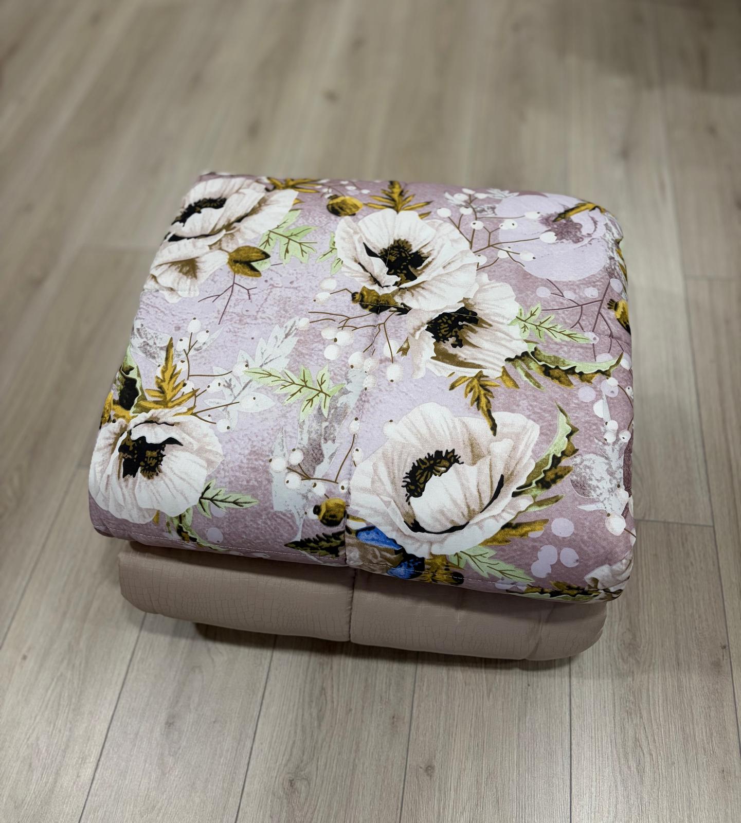 Trapunta matrimoniale invernale double face flower e tortora progettata per essere utilizzata da entrambi i lati offrendo la possibilità di cambiare l’aspetto del letto senza cambiare la trapunta.