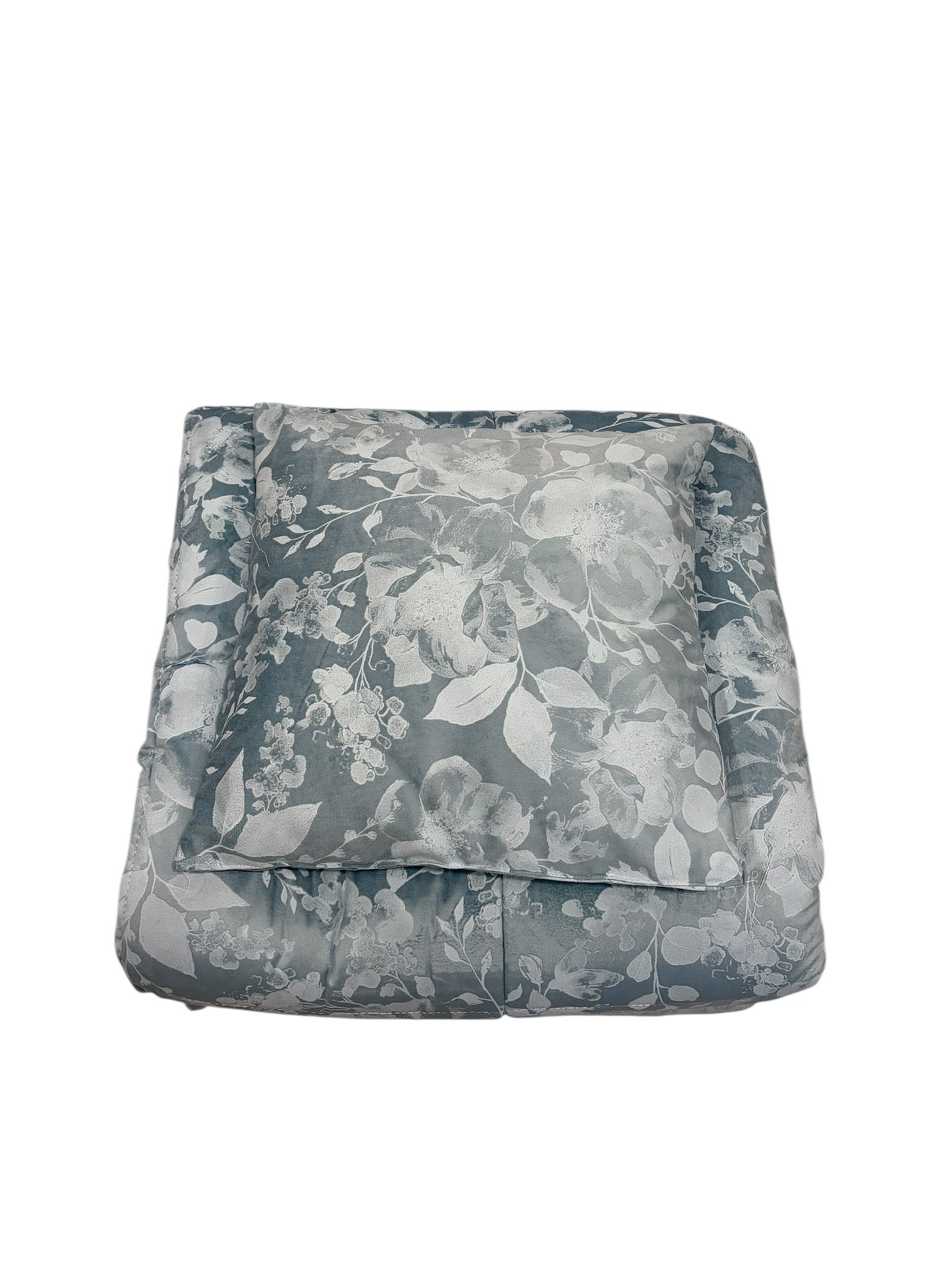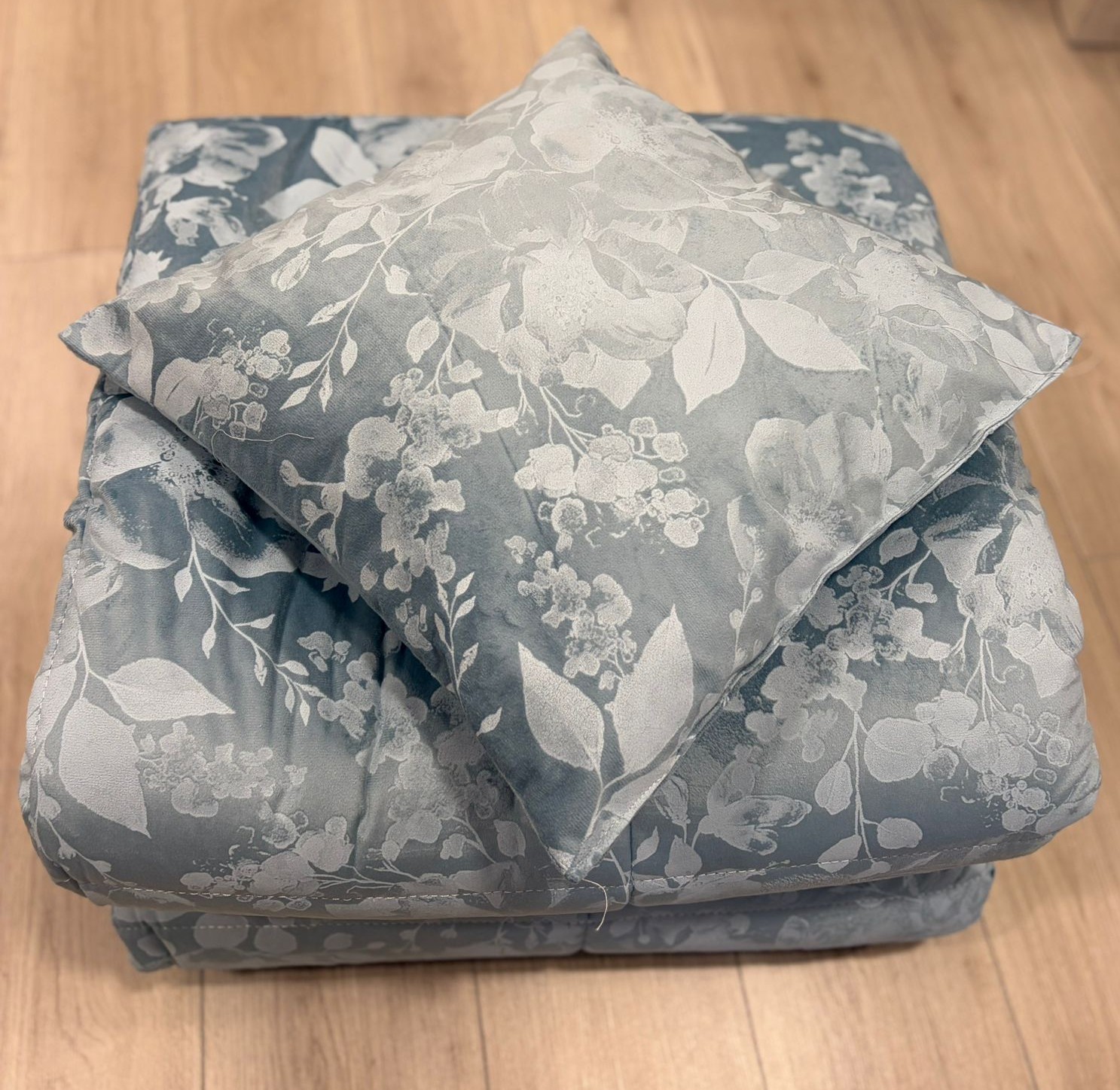 Trapunta matrimoniale invernale in velluto carta da zucchero con una stampa raffinata floreale tono su tono. Include cuscino coordinato.