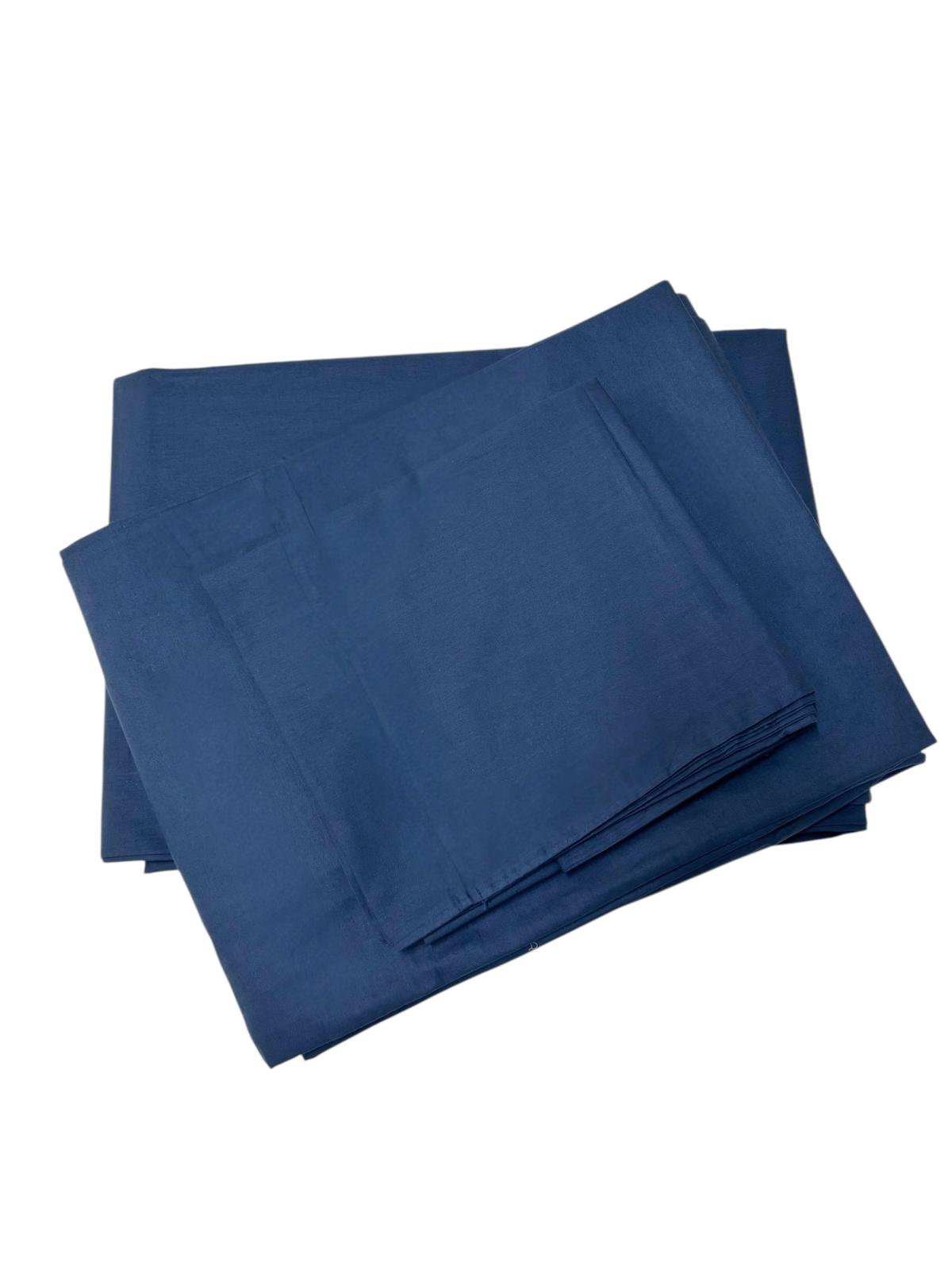 Completo letto matrimoniale composto da: un copriletto, un lenzuolo e da due federe per cuscini tinta unita. 100% cotone.