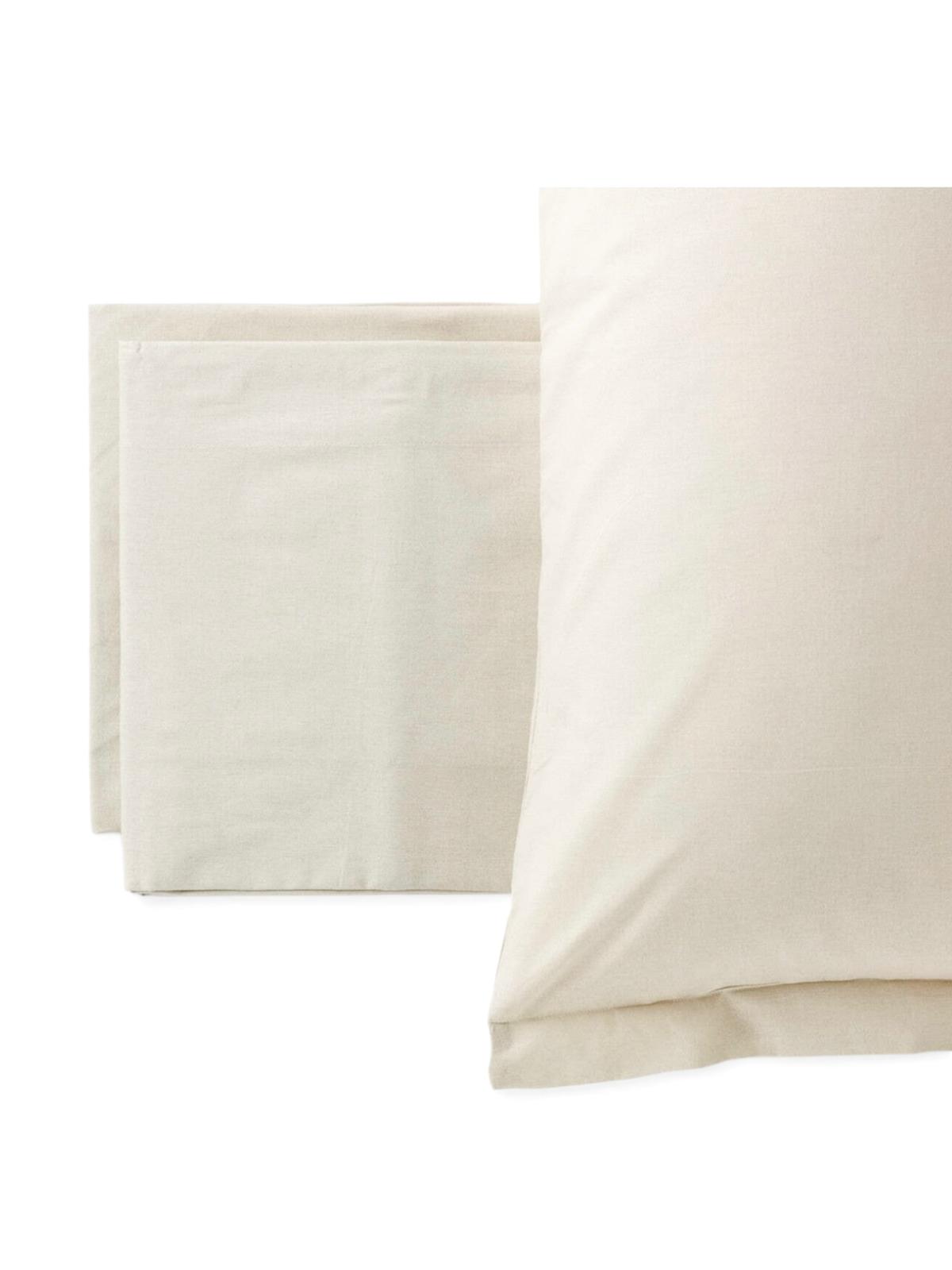 Completo letto matrimoniale composto da: un copriletto, un lenzuolo e da due federe per cuscini tinta unita. 100% cotone.