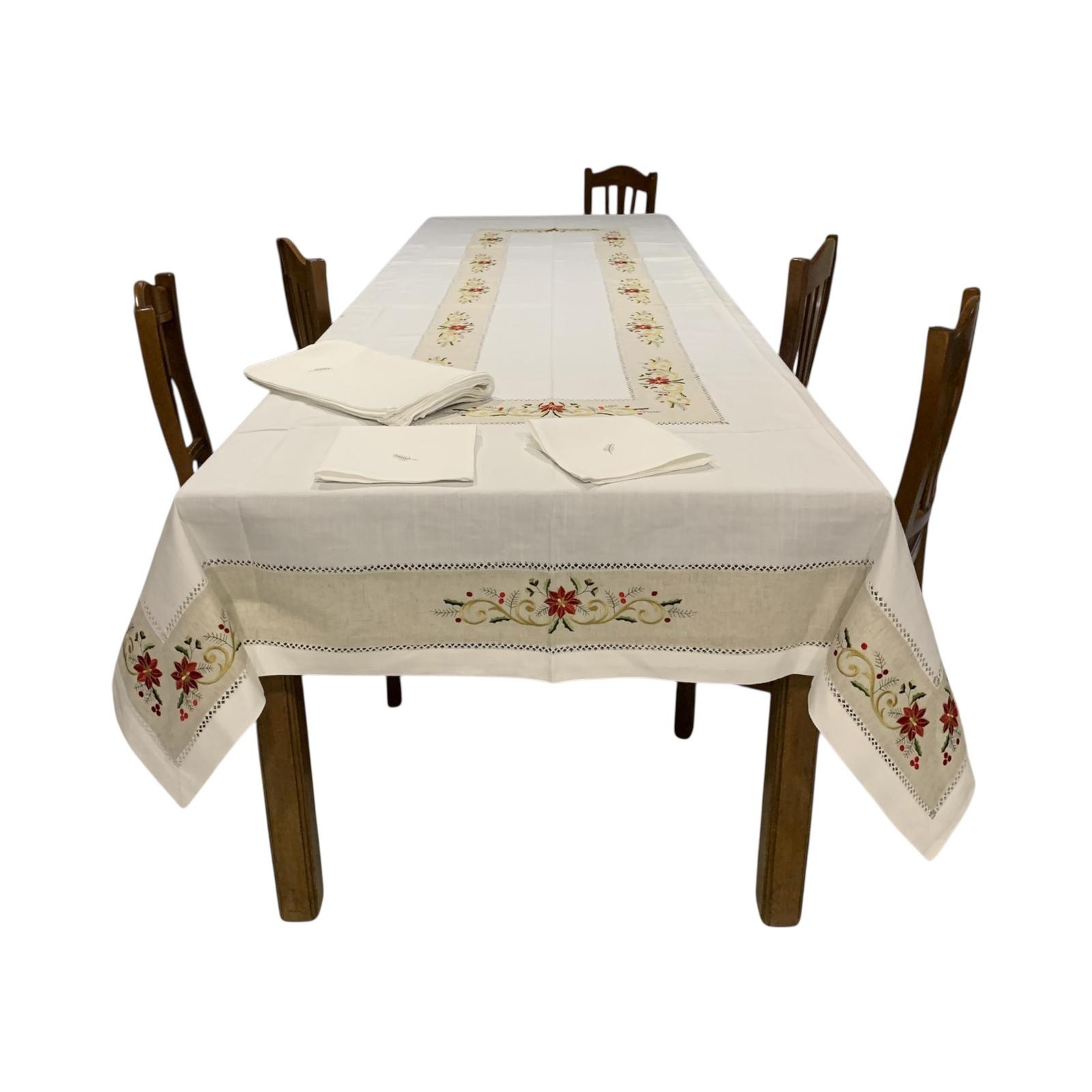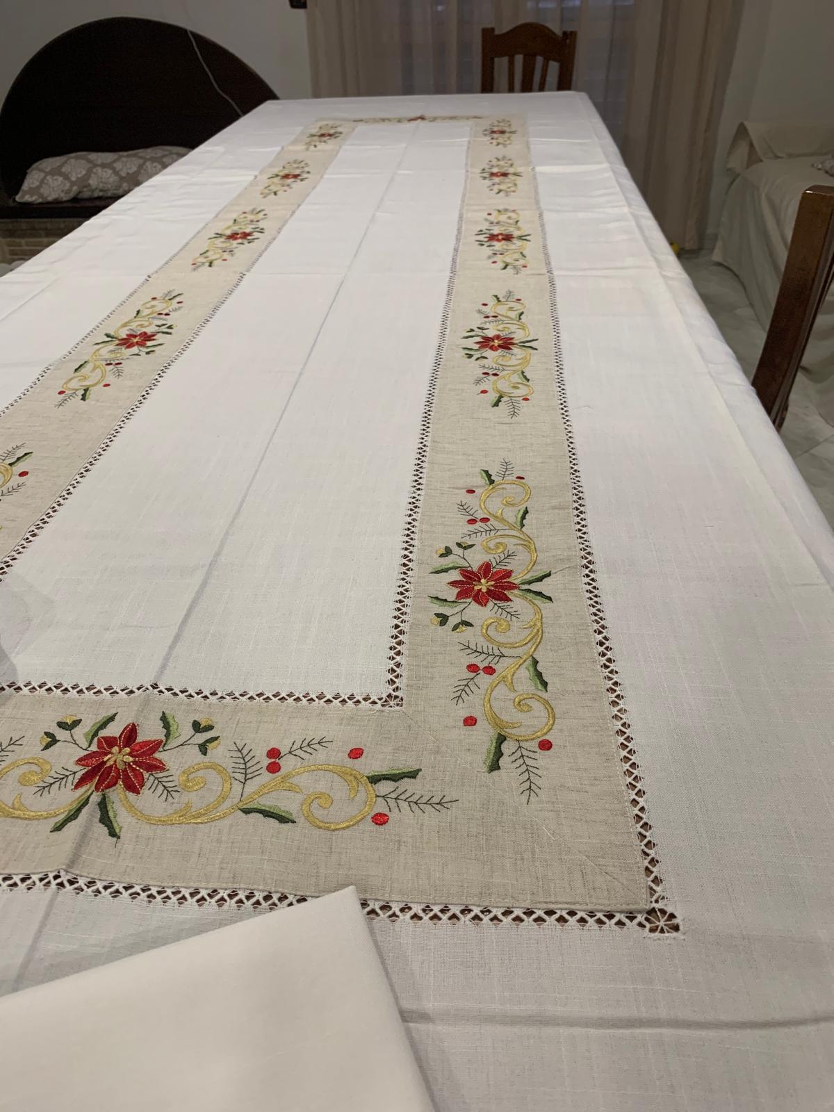 Tovaglia in puro lino ricamata da 18