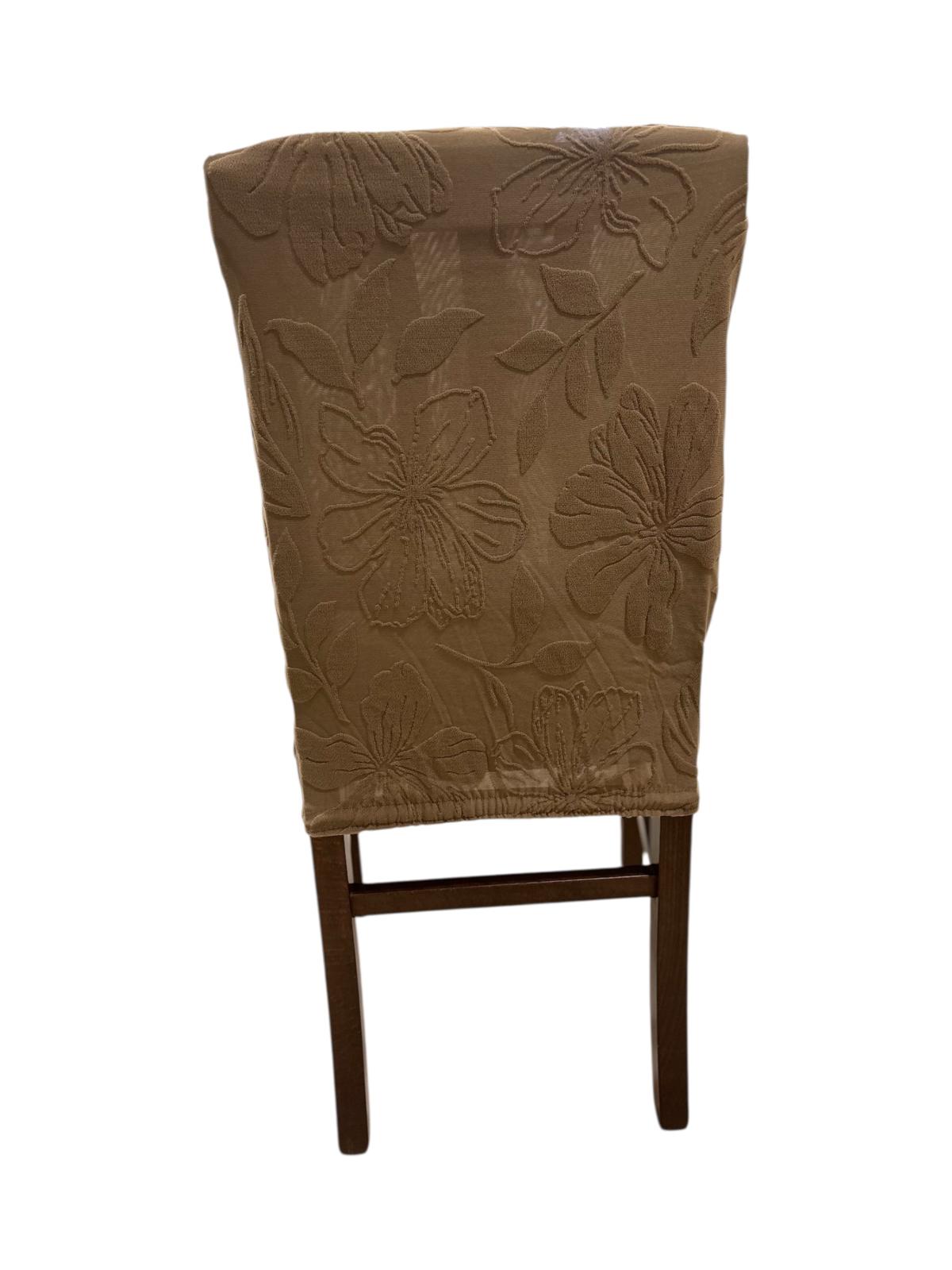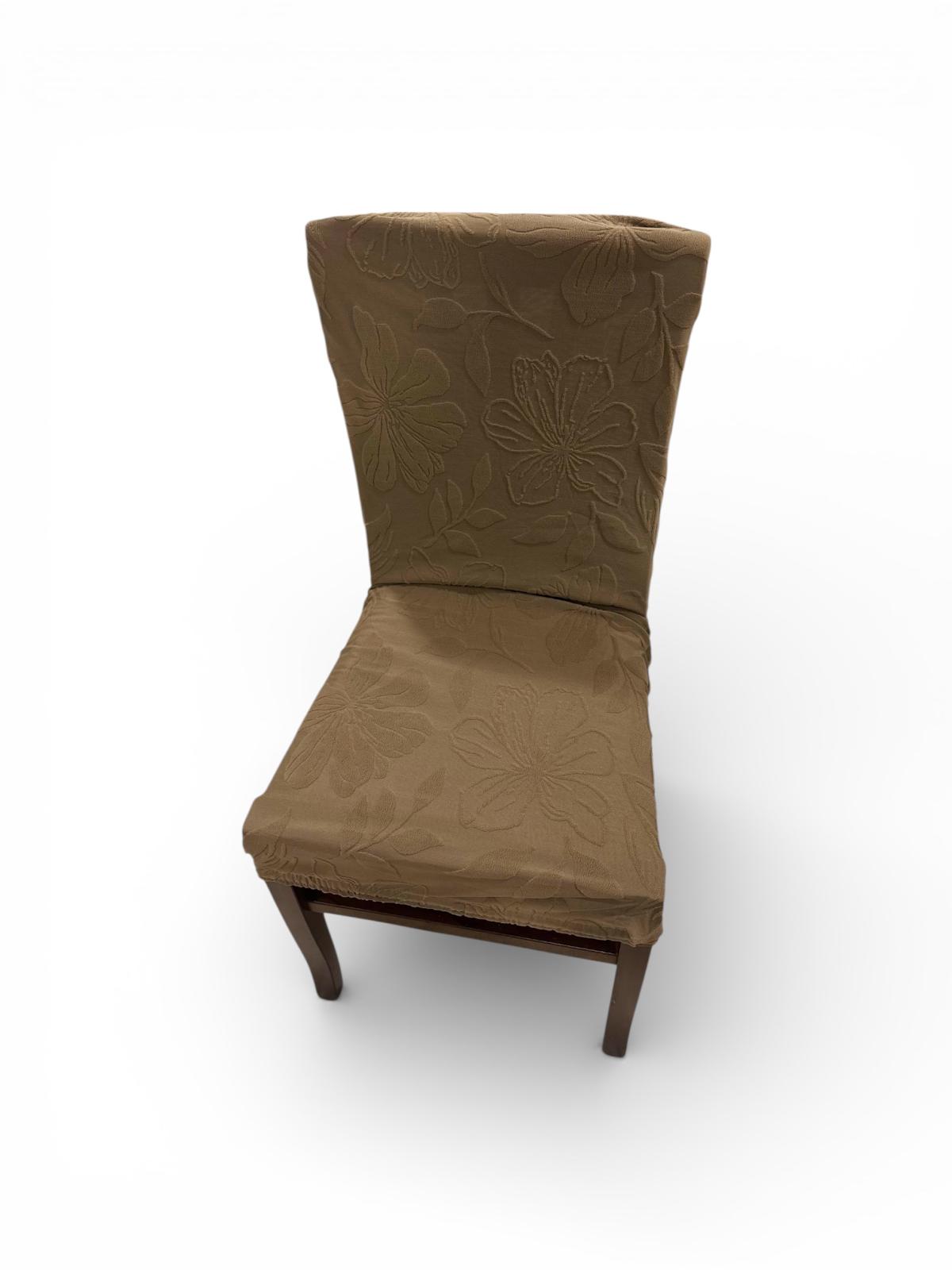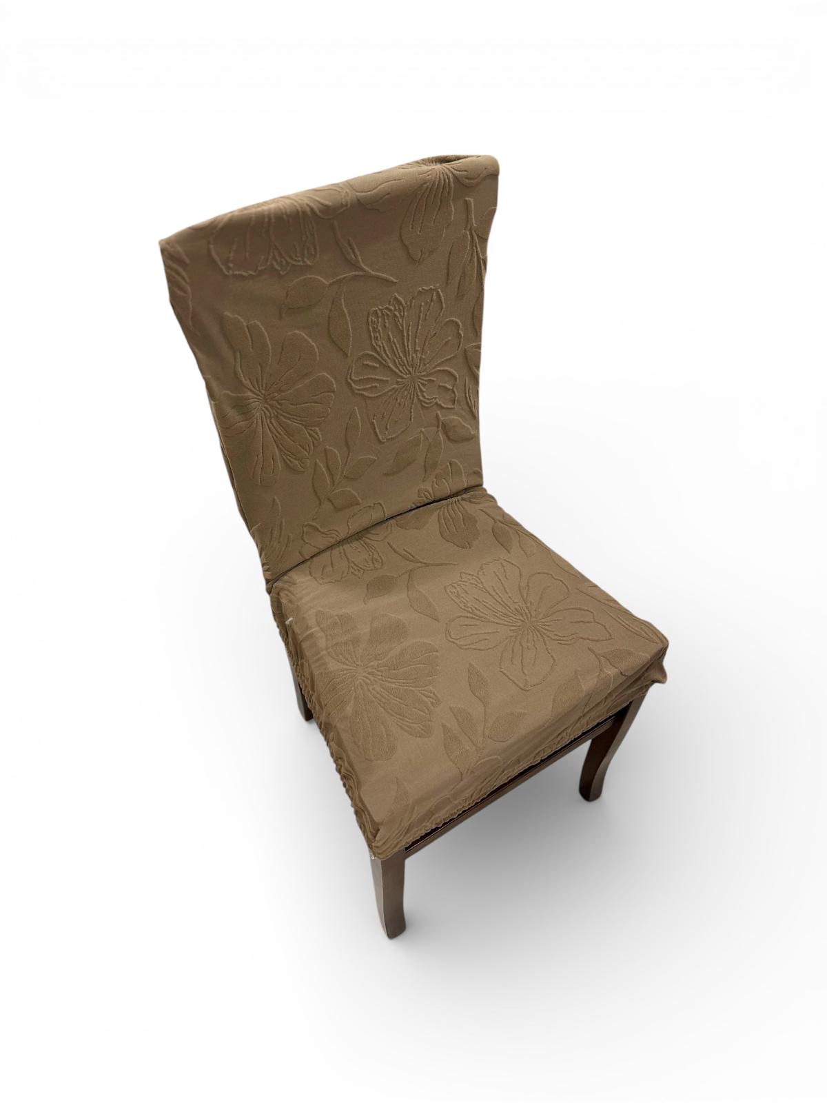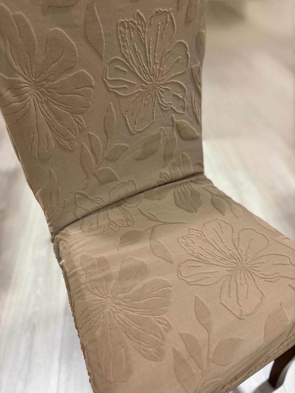 Coprisedia elasticizzato universale marrone con fiori a rilievo.