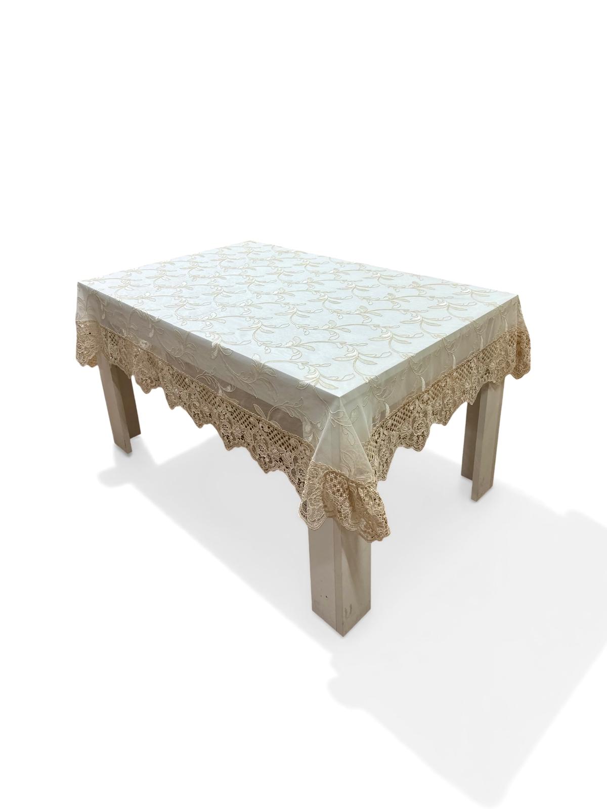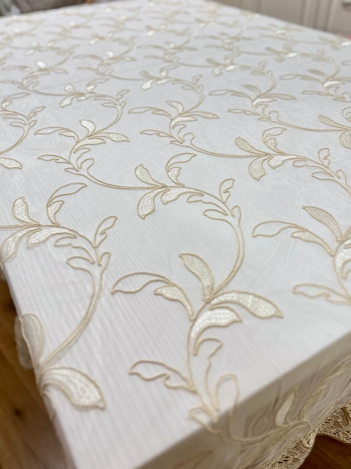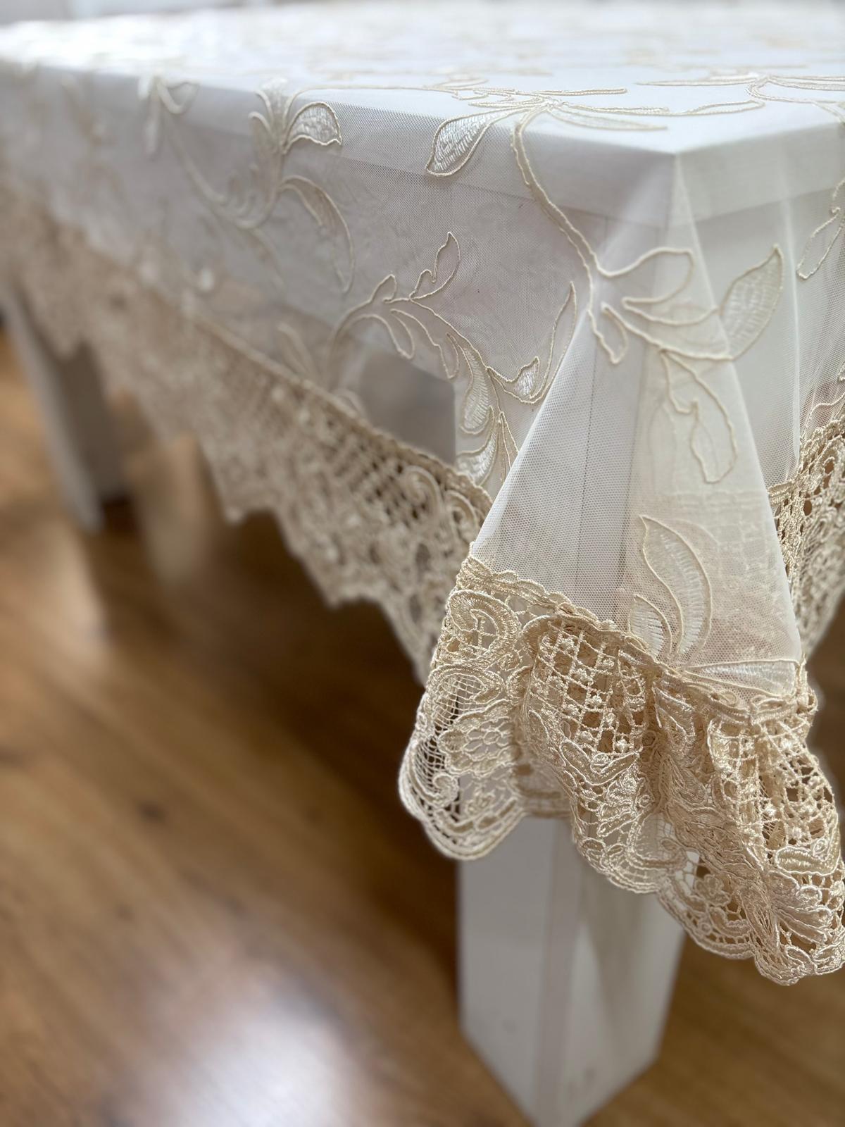 Tovaglia in pizzo ricamato e con foglie avorio.