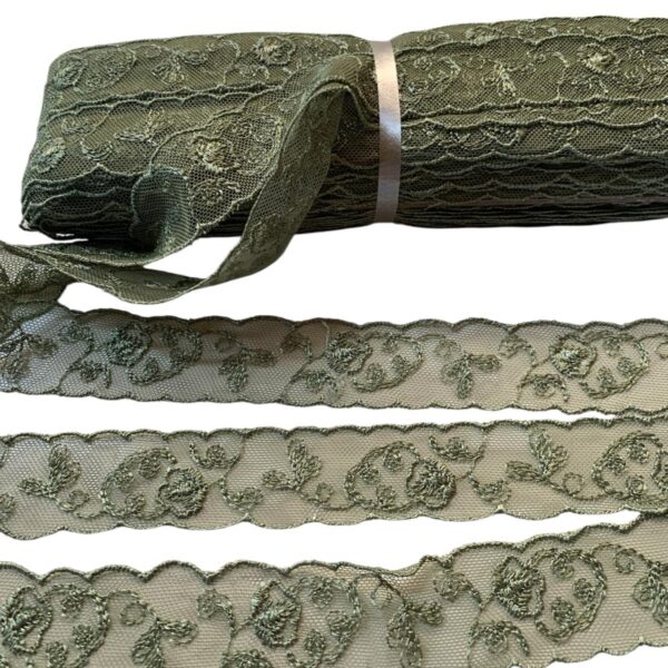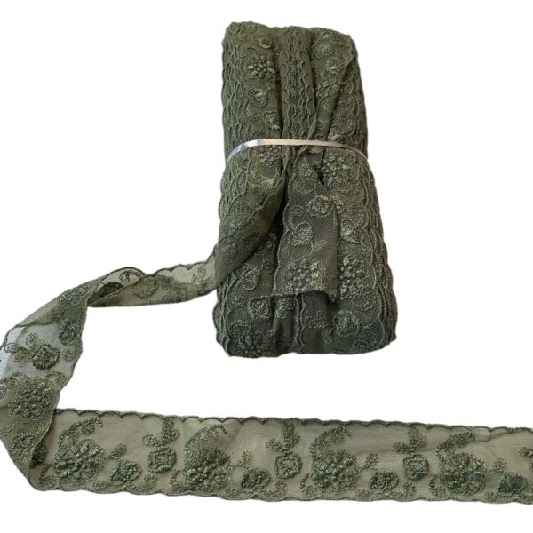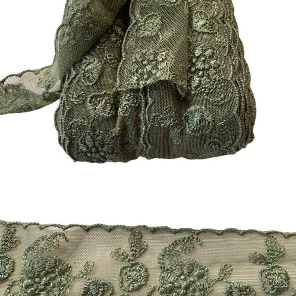 Art 1045 Pizzo in tulle ricamato verde ordine minimo 35 mt