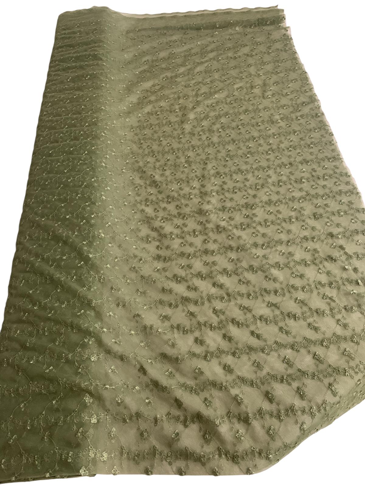 Tessuto tulle ricamato verde antico altezza mt 2.88 ideale per tendaggi