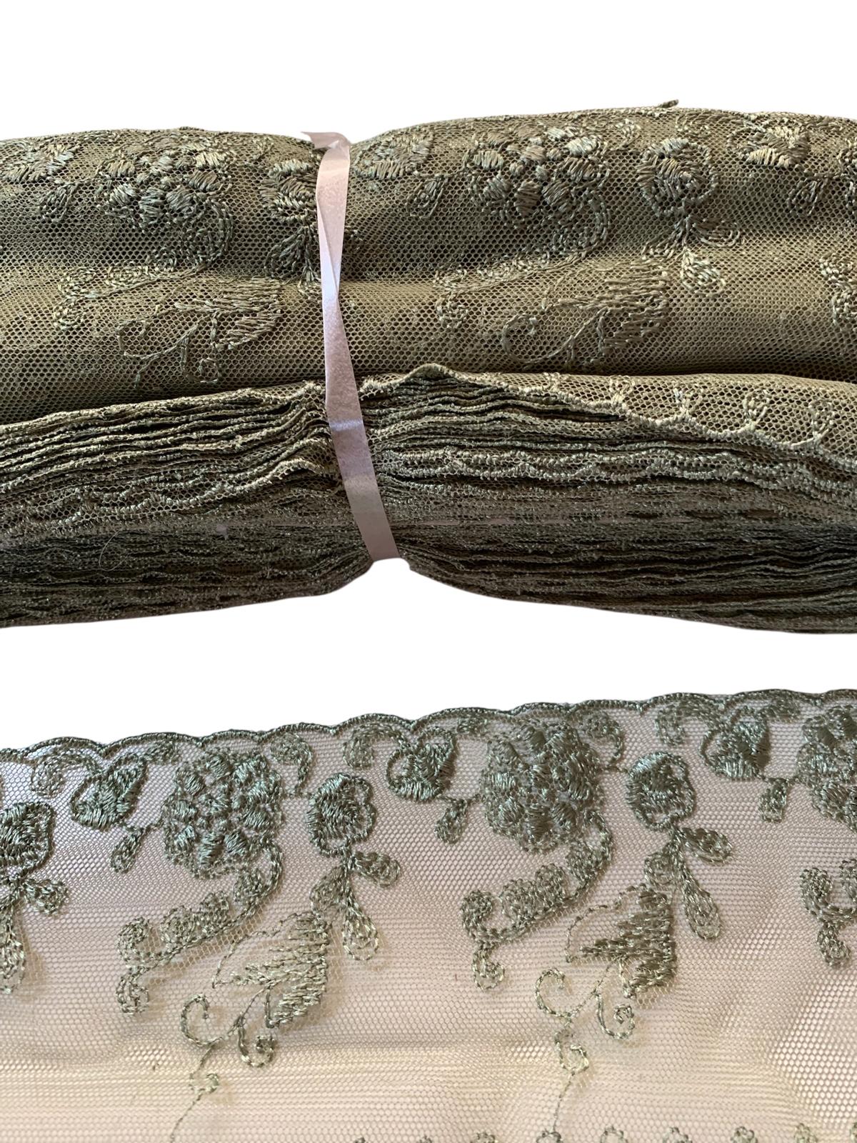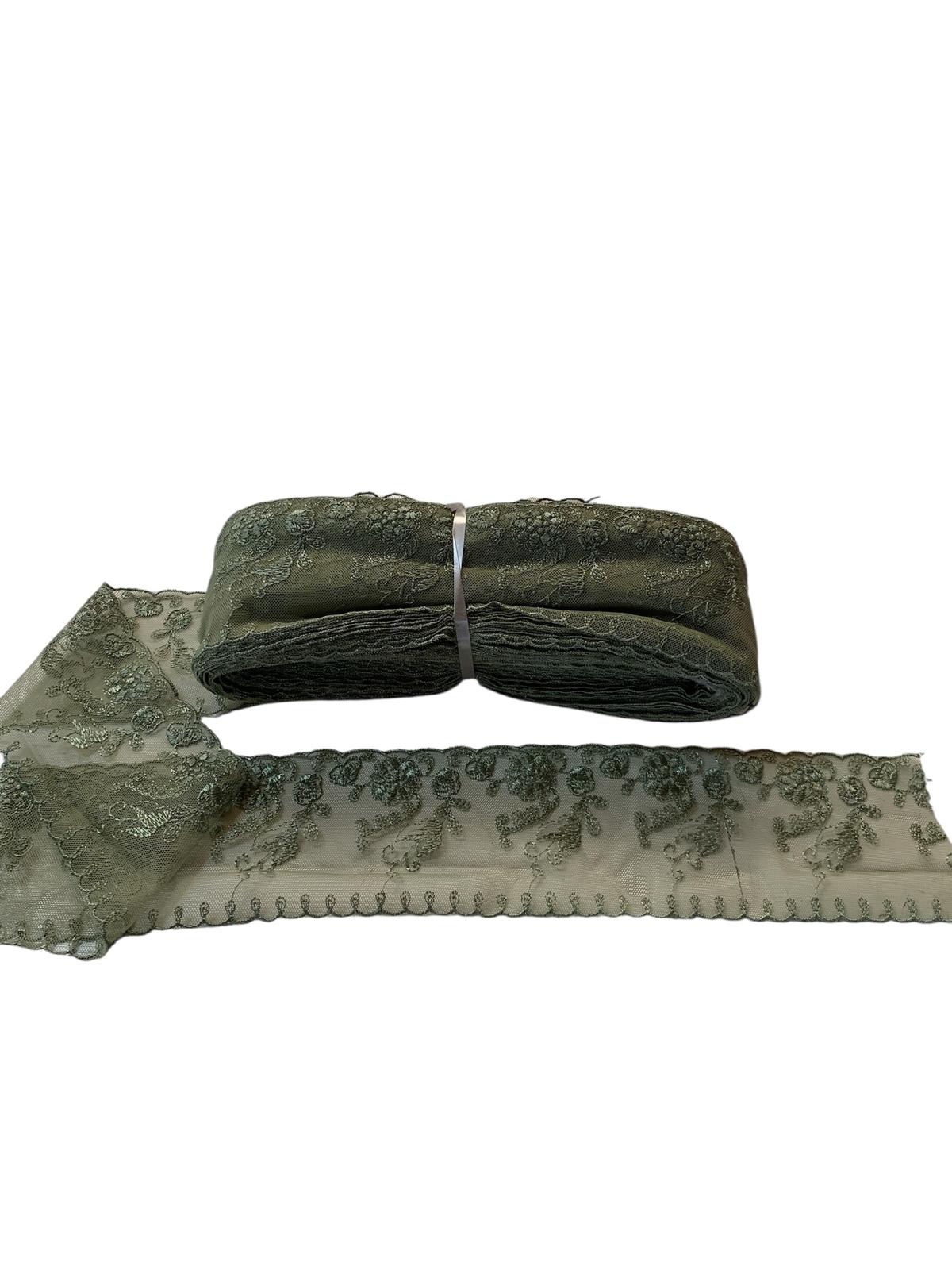 Recensisci per primo “Art 1045 Pizzo in tulle ricamato verde ordine minimo 35 mt”