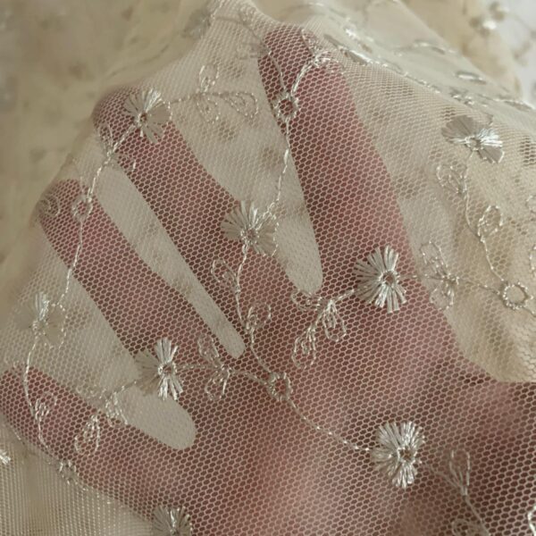 Art 1077 tessuto in tulle ricamato crema altezza cm280 ordine minimo mt 5