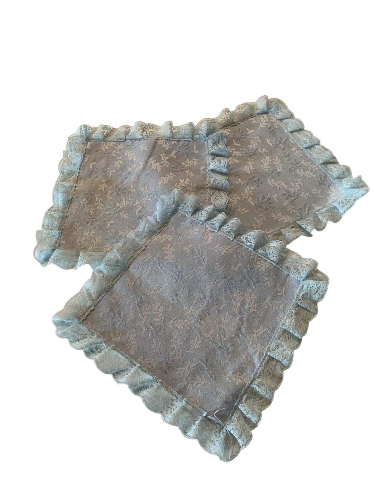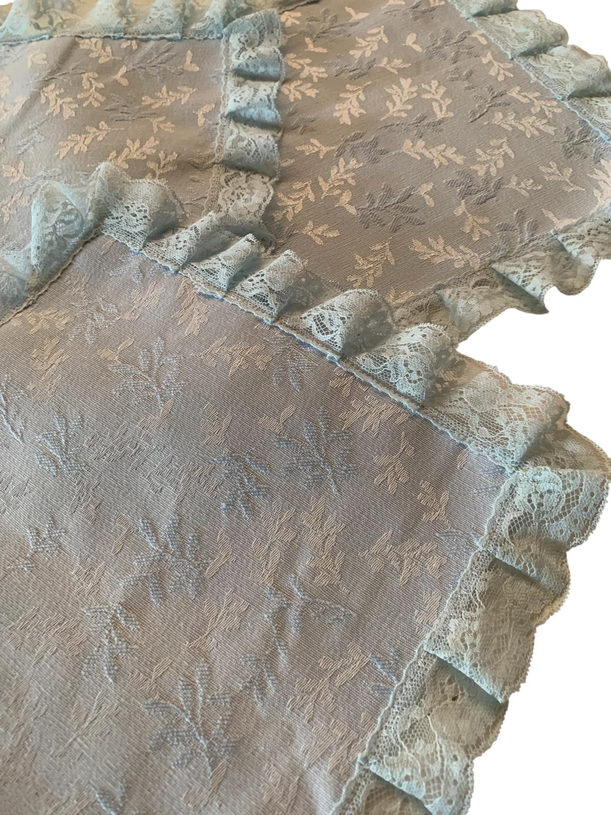 Centrino con pizzo damasco celeste