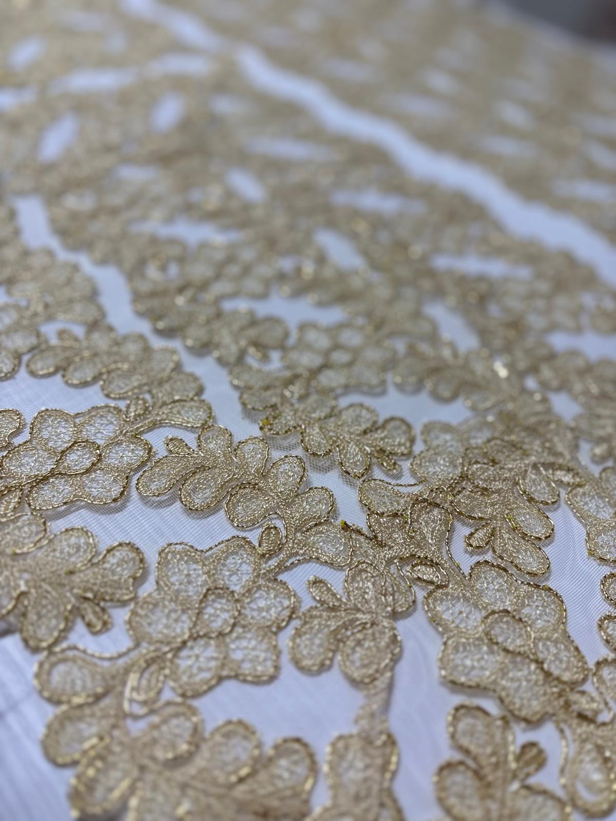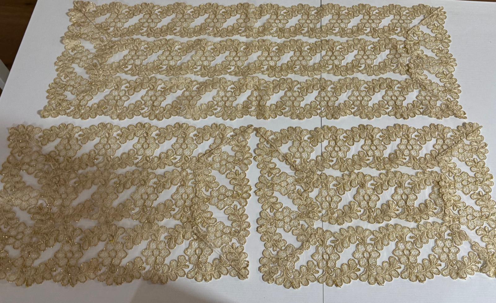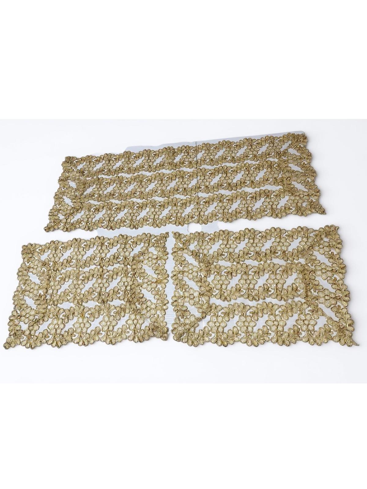 Tris centri interamente in pizzo oro lavorazione artigianale.