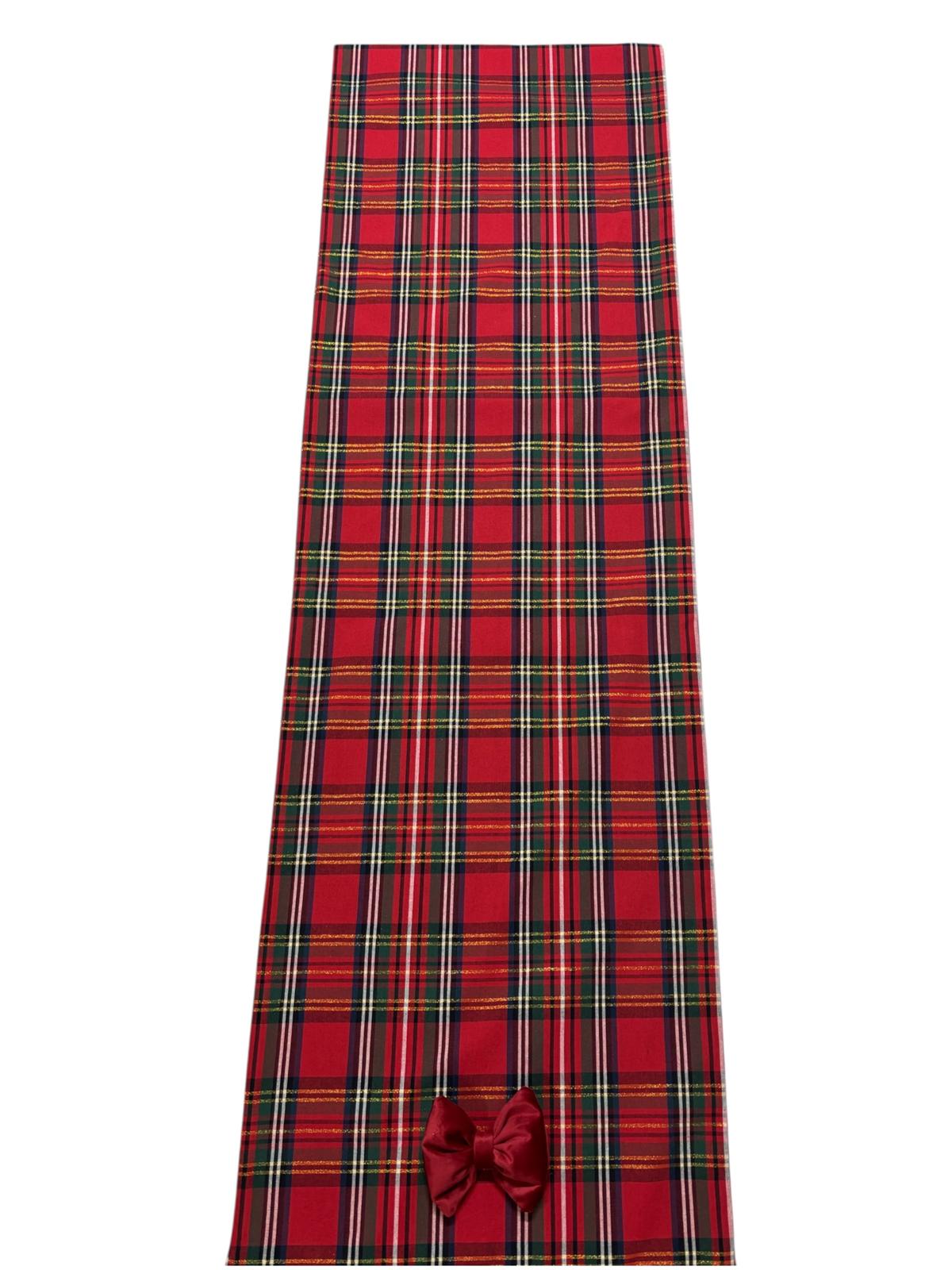 Runner in tartan scozzese decorato con fiocchi rosso in velluto da entrambi i lati.